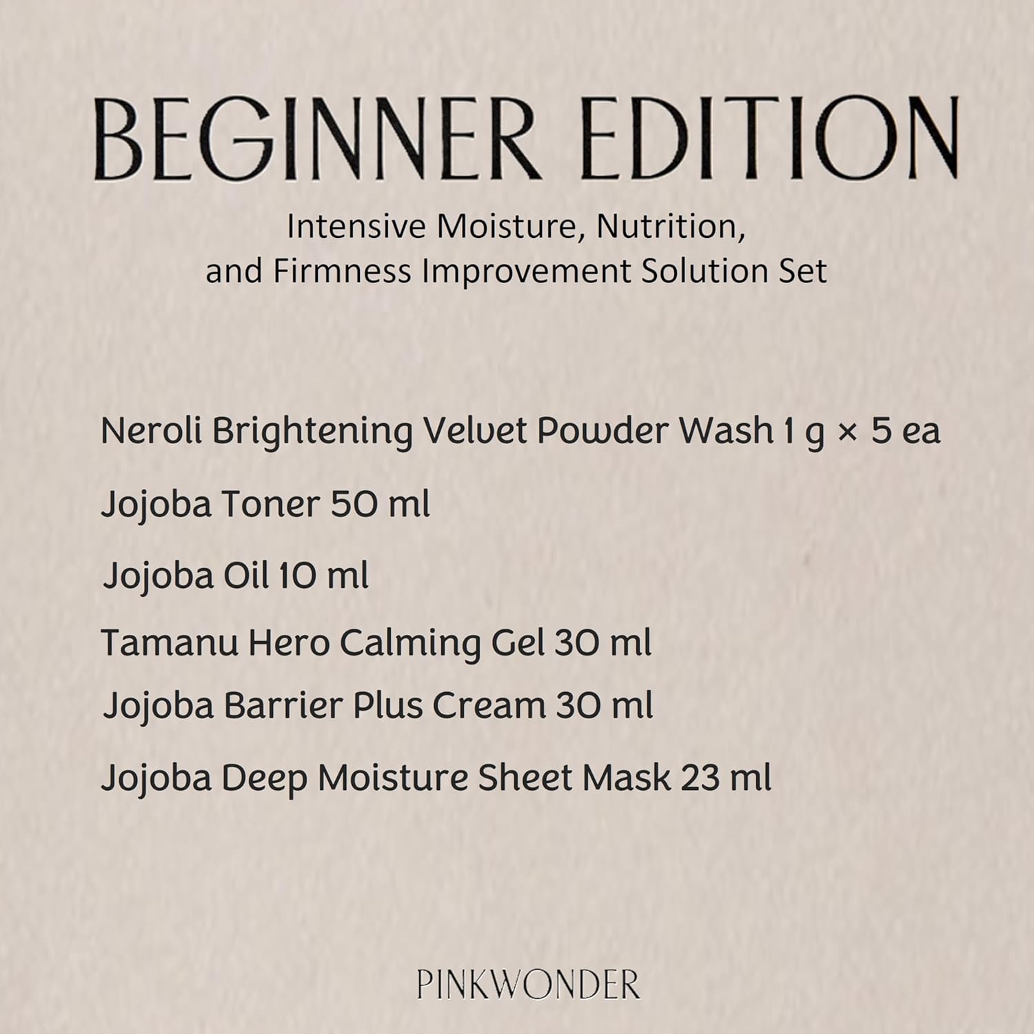 Beginner Edition (Jojoba Oil 10ml, Jojoba Toner 50ml, Jojoba Barrier Plus Cream 30ml, Jojoba Mask Sheet 1ea, Tamanu Hero Carlming Gel 30ml, Neroli Powder Wash 5ea)
