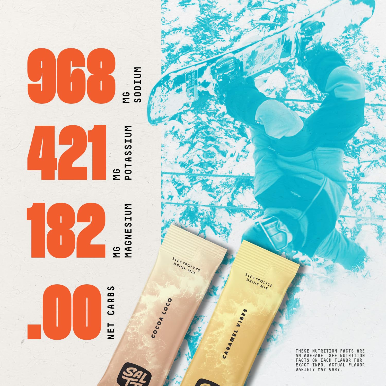 - Everyday Hydration: From the boardroom to the surfboard, SALTT electrolyte powder supports your lifestyle with the energy you need. No artificial flavors or sweeteners. Just pure electrolytes. Double-up the chocolate in this cocoa-licious variety pack!