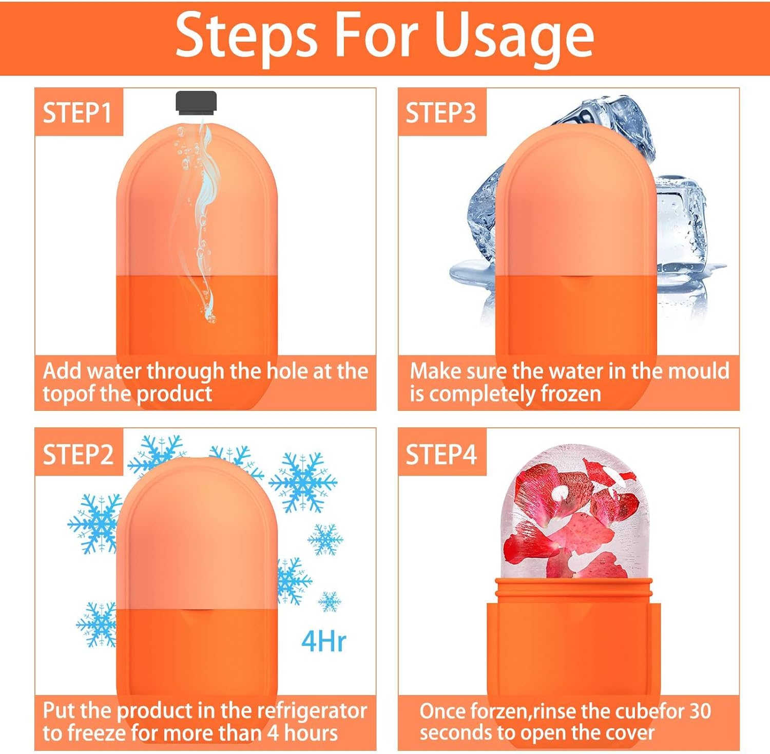 - 💞【Easy to use】 EASY TO USE: Fill the ice roller massager mold with water. Freeze in refrigerator for more than 4 hours,when using it apply the ice to your skin in 30 second intervals in circular motions. For optimal results, It is recommended to use 1 or 2 times a day.
