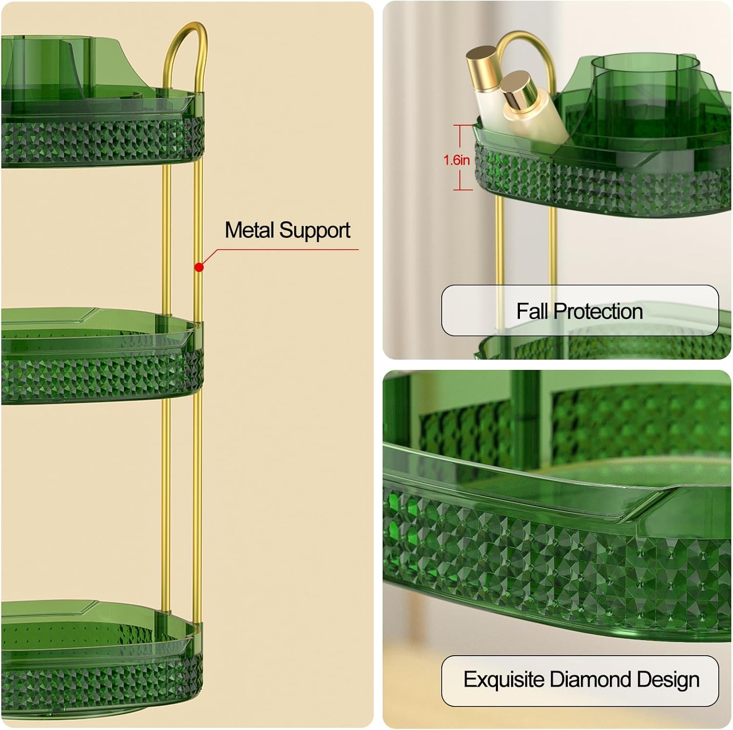 Rotating Makeup Organizer for Vanity 3 Tier, Perfume Organizer with Makeup Brush Holder, Large Capacity Cosmetics Clear Skincare Organizer for Countertop (Green)