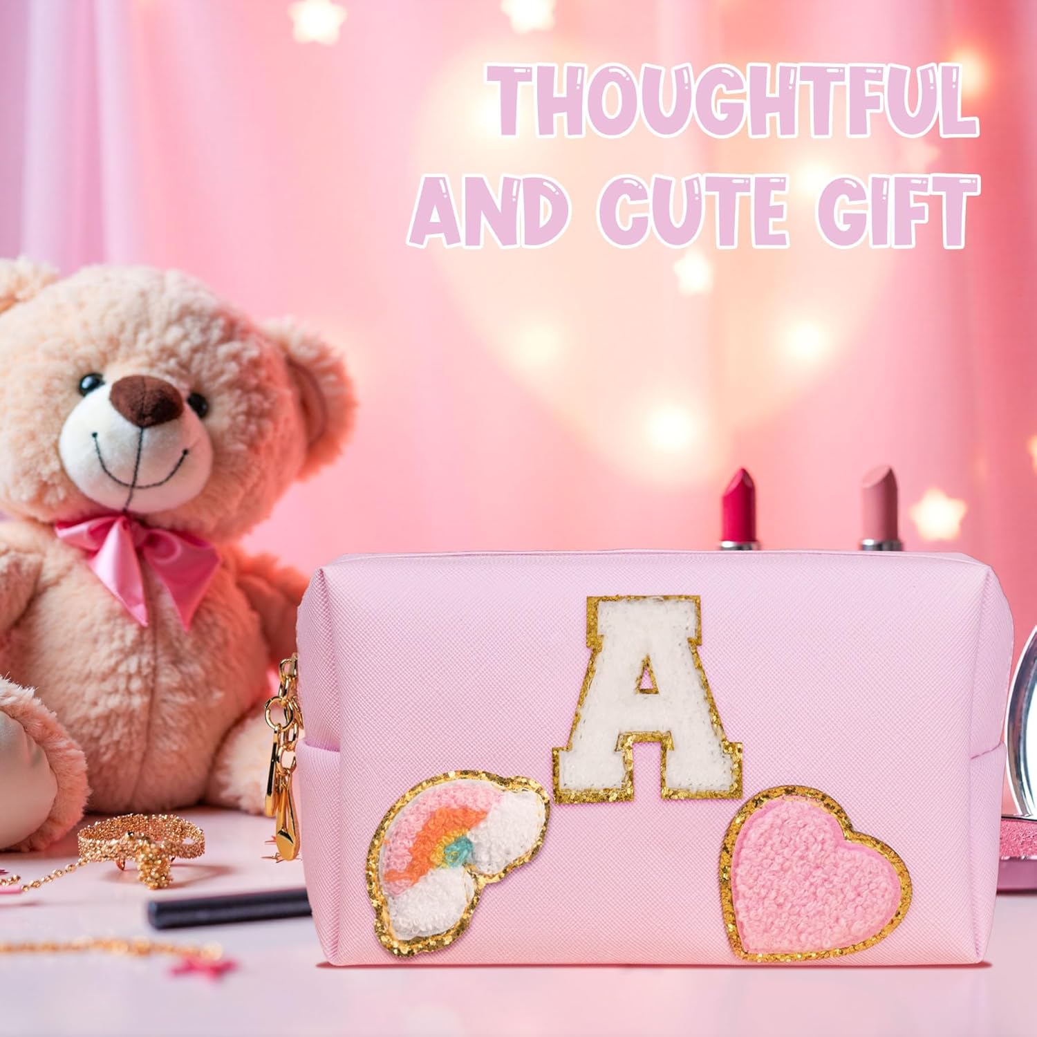 • 【Preppy Gift Idea】Looking for a gift for your daughter, sister, friends or girlfriend? Look no further than our preppy patch makeup bag! Whether for Christmas, Valentine's Day, birthdays, or other holidays, this adorable and practical gift will bring joy to your special someone.