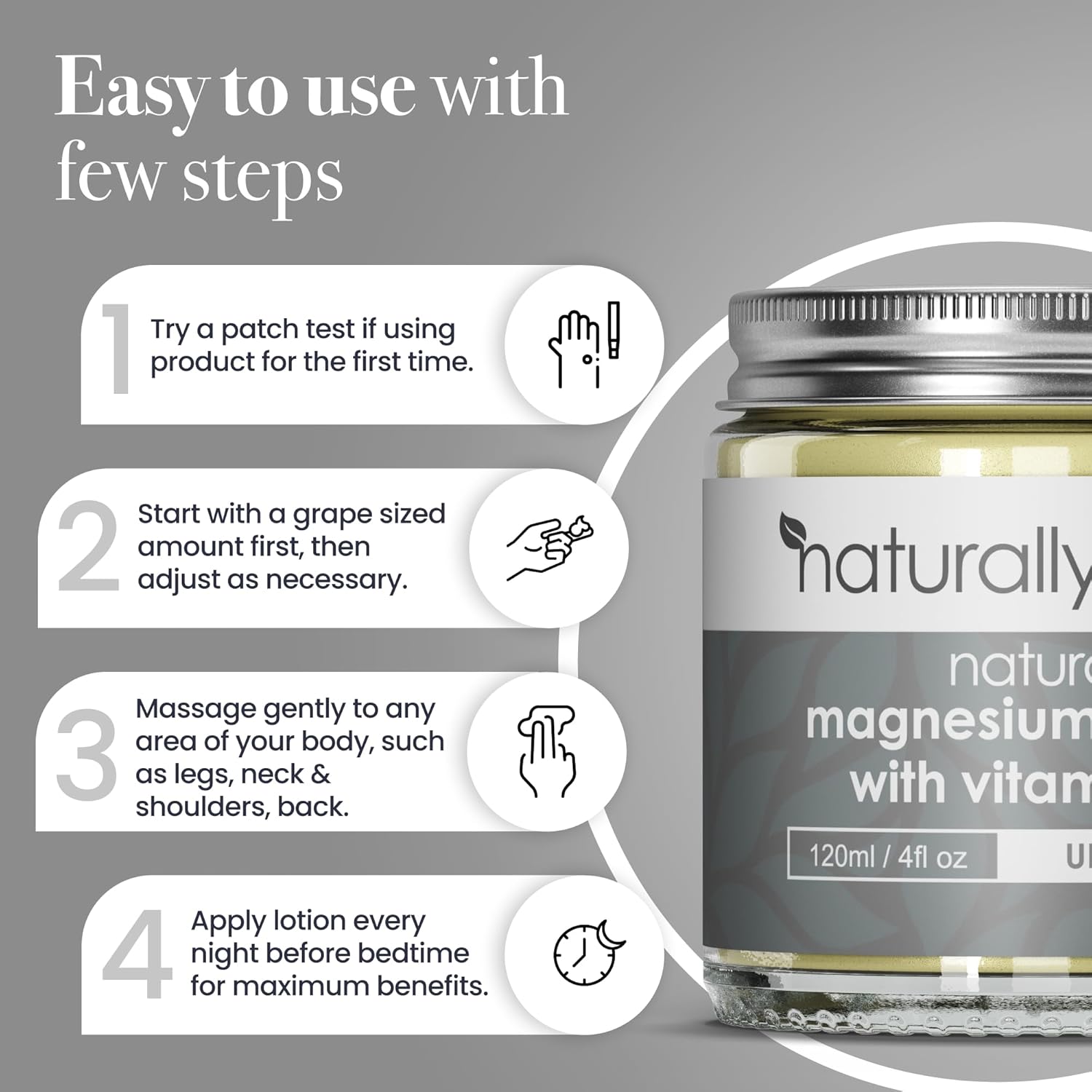 - EASY-TO-USE: Rub the cream on your palms for 5-10 seconds. Then apply to your body in circular motions and massage gently.