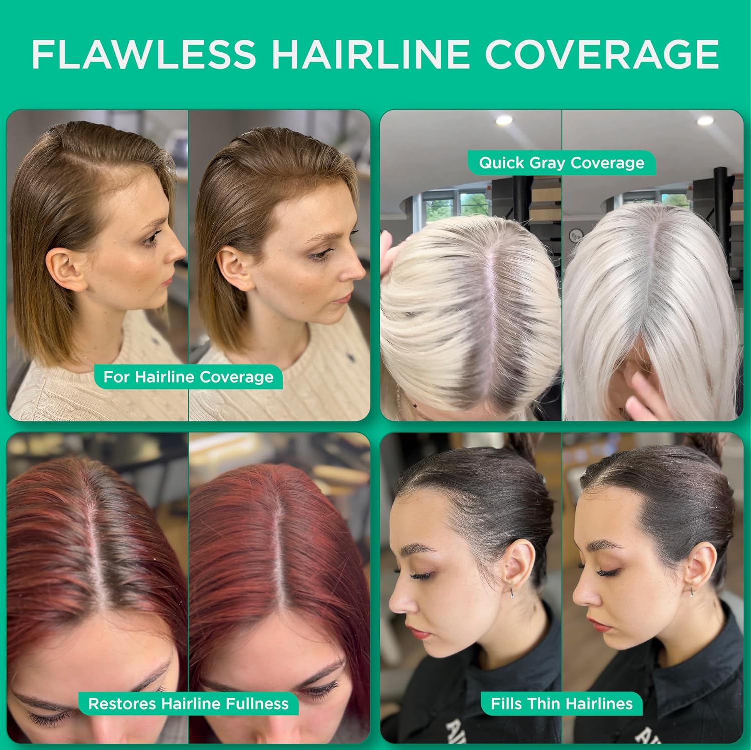 - Product Benefits : our temporary root touch-up powder, designed to conceal roots effortlessly. This innovative formula blends seamlessly with your natural hair color, providing instant coverage for grays and regrowth. The product comes with a convenient brush and sponge for easy application, allowing you to achieve a flawless finish in just minutes.n our temporary root touch-up powder, designed to conceal roots effortlessly. This innovative formula blends seamlessly with your natural hair color, providing instant coverage for grays and regrowth. The product comes wit⦠See more