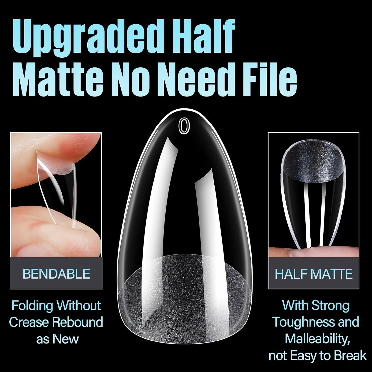 - 【Professional Nail Tips Almond Shape】Great medium almond press on nails show a great clear cover with innovate material soft acrylic tips can be used with nail polish, dip powder, acrylic acrylic powder, easily make salon nail effect instead of dropping money at expensive salon!