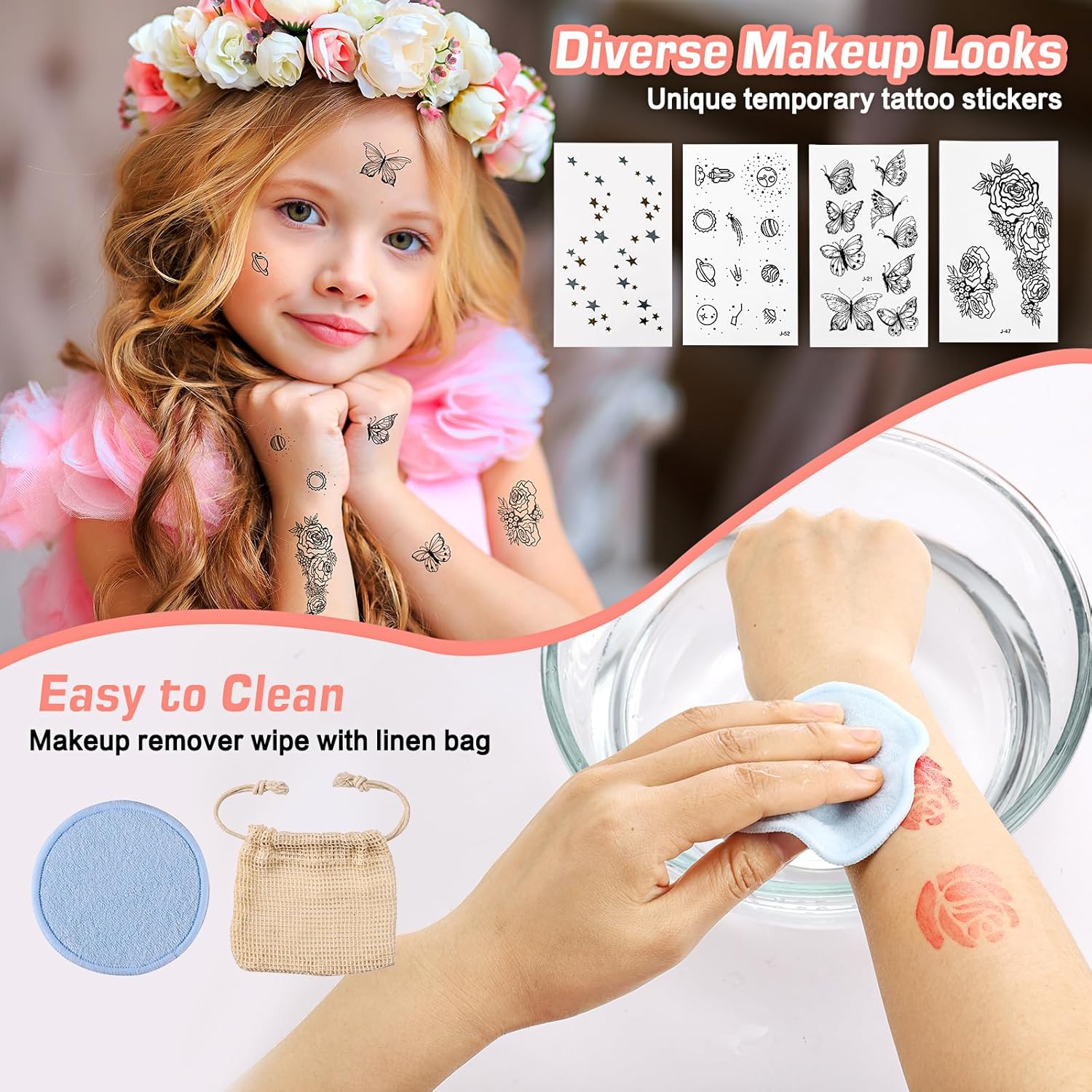 - Suitable for All Skin Types: Our makeup kits cater to almost every age and are completely free from phthalates, parabens, synthetic fragrances, and animal testing, ensuring they are gentle on all skin types. Additionally, a reusable wipe is included for easy makeup removal.