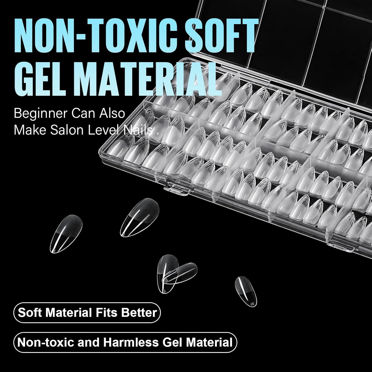 - 【Fit Natural Nails】The design feature of thick front edge and thin rear edge makes the nail tips fit our nail bed better. Smooth curves ,radians and good color condition, without separation or exposure, and your nails will look more natural. No tightness on nails.
