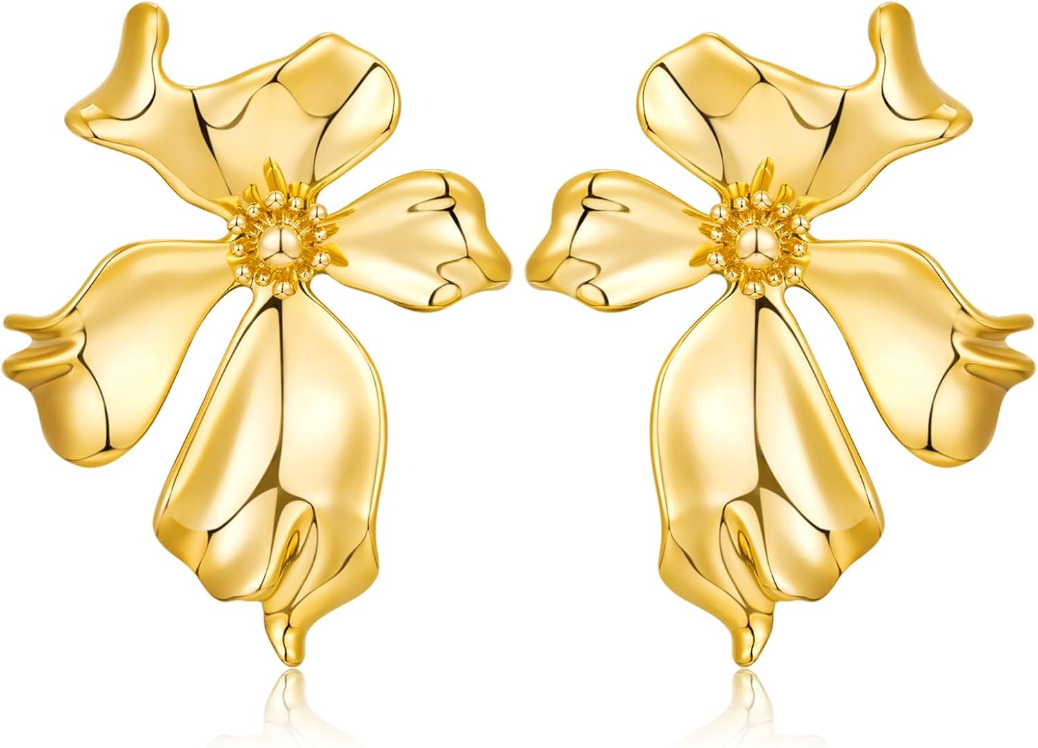 - 🌸Ideal Size:This pair of gold statement earrings is light and graceful, with each earring weighing merely 0.4 ounces and measuring 1.9 inches by 1.6 inches, akin to a petite golden garden that gently blossoms at your earlobes, beautifully illustrating the seamless blend of nature and fashion.
