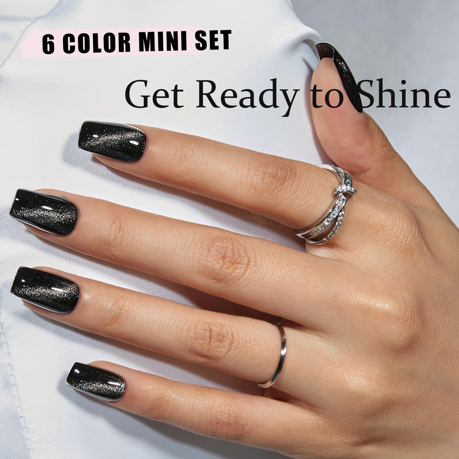 - Tips: Hold the magnetic stick 3-5mm above the surface for 5-10 seconds to achieve your desired effect! [ What You Get]: Black Red Colors of Semi-transparent Holographic Glitter Cat Eye Gel Nail Polish (5 ml/ 0.17 fl. oz each) + 1 Magnetic Stick for various cat eye designs. Each shade of Modelones cat eye nail polish is expertly mixed with metallic magnetic glitter powders for a stunning, shiny finish. Different angles create different visual effects. Practice makes perfect!