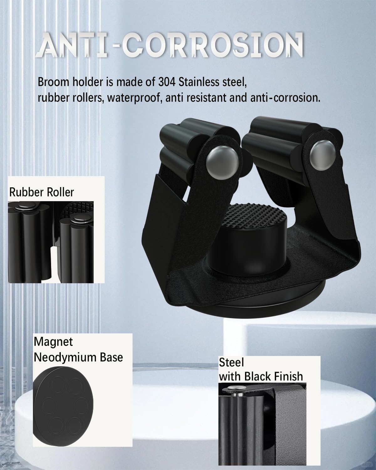 - Quality build: magnetic broom holder heavy duty made of steel frame with rubber rollers; lightweight and sturdy; durable enough to withstand harsh conditions; like rainy; snowy; salty environment