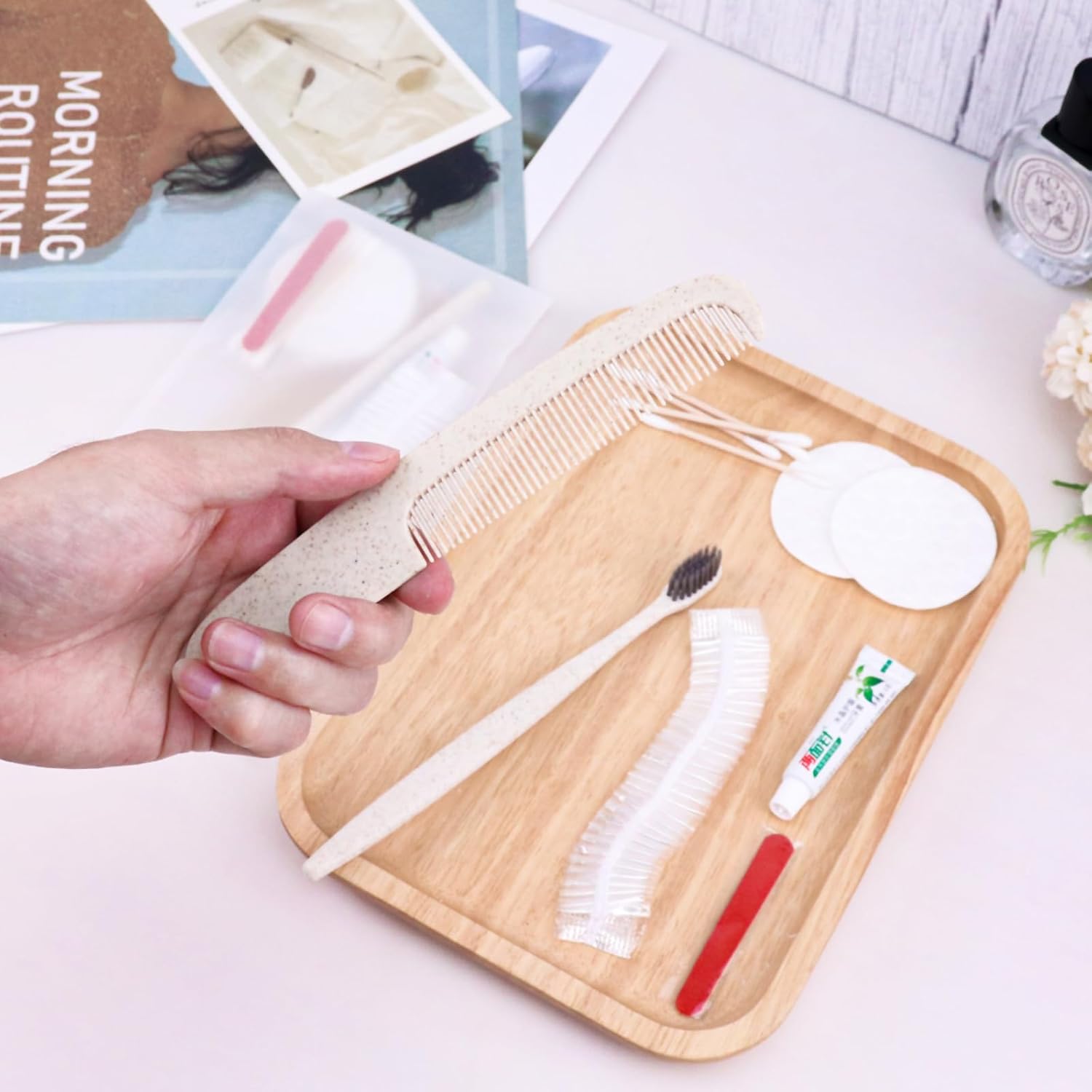 - More sets to match: our hygiene travel kit comes in a pack of 30 sets. Each travel size hygiene products bulk set consists of a disposable Toothbrush, toothpaste, care package, comb, shower cap. personal care travel size toiletries make it even more comprehensive, convenient and comfortable to use. The personal care travel size toiletries are comprehensive, convenient, comfortable and secure.