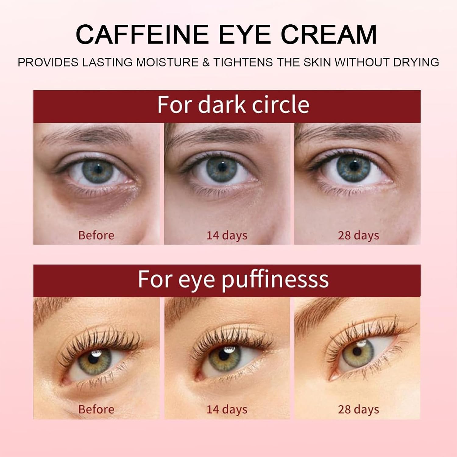 - 【Advanced Caffeine Eye Cream】Our premium eye cream for puffiness and bags under eyes aims to solve three major eye problems-puffiness, dark circles and wrinkles. Infused with a potent caffeine eye serum promote a smoother appearance, and awaken tired-looking eyes.