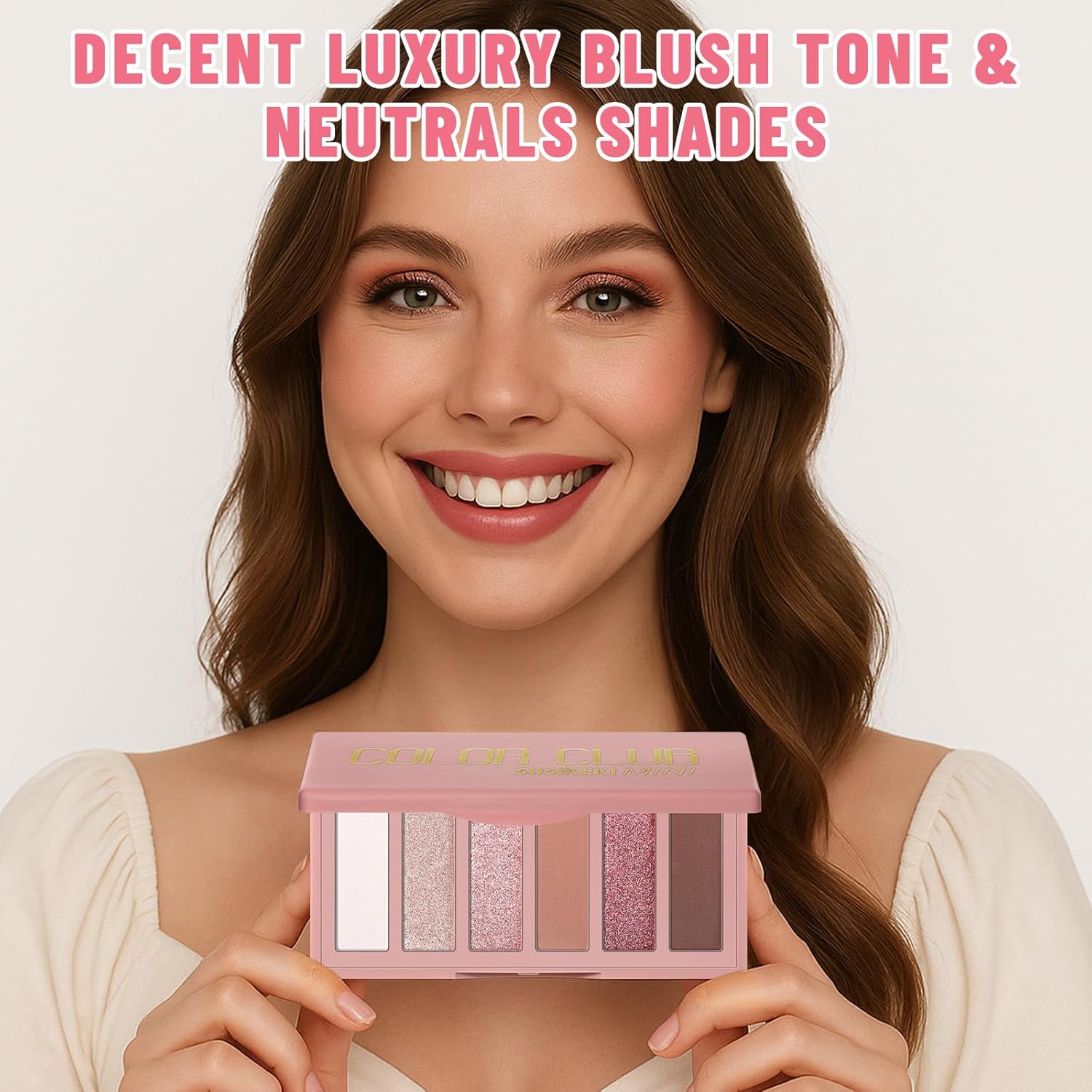 6 Colors Mini Eyeshadow Makeup Palette Blush-colored Neutral Tone Eye Shadow Matte & Shimmer Nude Make Up Pallet with Mirror Blendable Highly Pigmented Travel Size Gift Kit 03