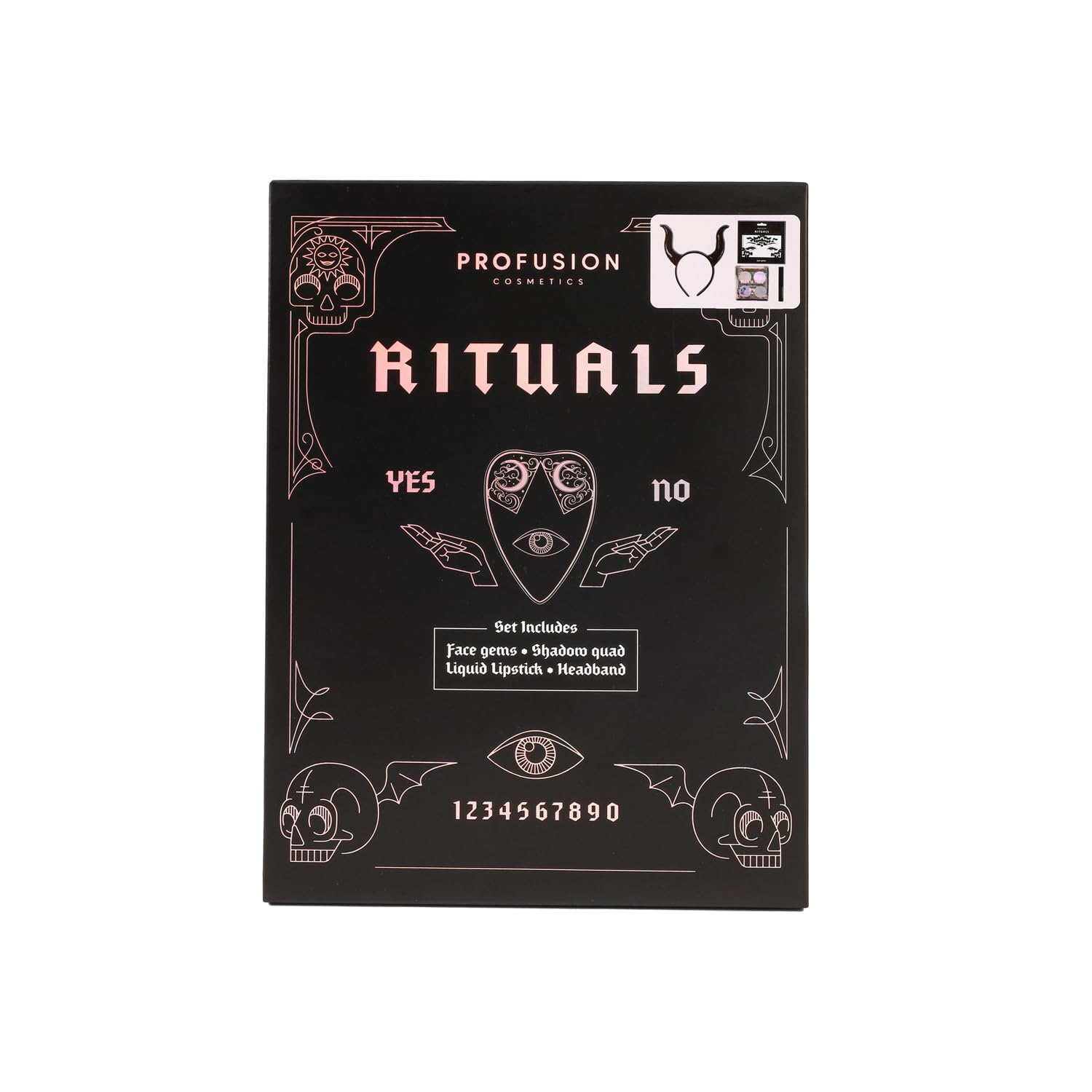 Profusion Cosmetics Rituals 4 PC Look Kit Includes Face Gems, Shadow and Glitter Quad, and Eyeshadow Brush, Along With Somber Matte Black Liquid Lipstick, Magical Beauty for Fairy Witches