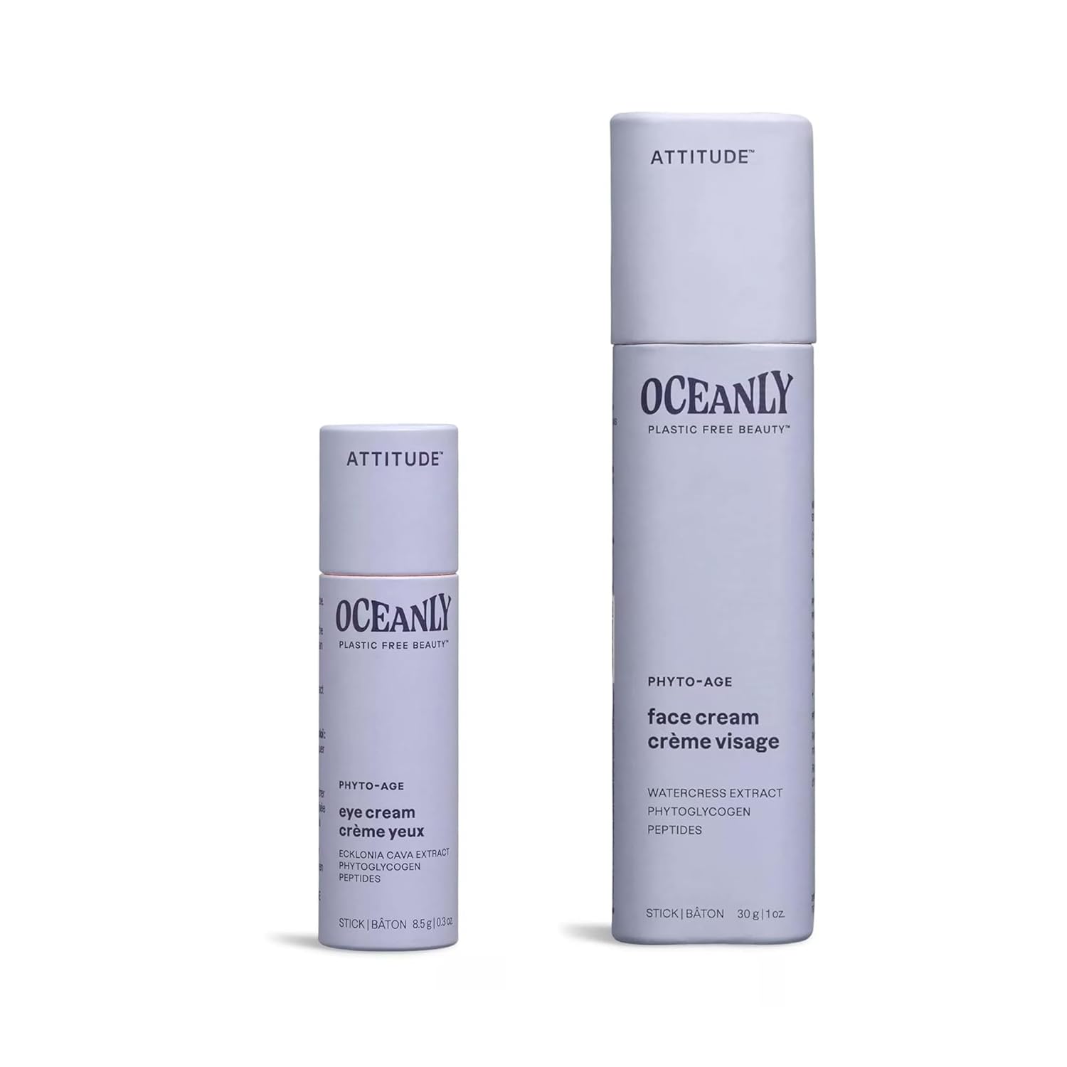 Bundle of ATTITUDE Oceanly Eye Cream Stick, EWG Verified, Plastic-free, Plant and Mineral-Based Ingredients, Vegan, PHYTO AGE, Unscented, 0.3 Oz + Face Cream Stick, PHYTO AGE, Unscented, 1 Oz