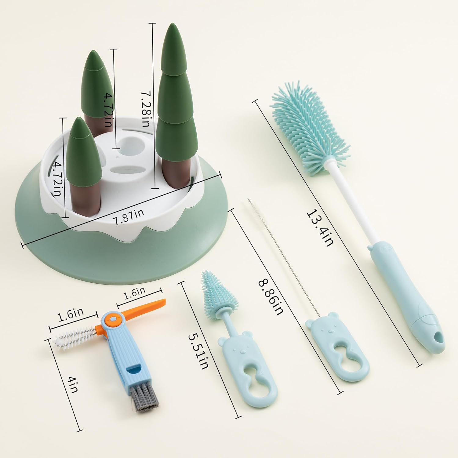 Baby Bottle Drying Rack and Cleaning Set, with Straight Silicone Baby Bottle Brush, Pacifier Brush, Straw Brush, Cup Lid Cleaning Brush, 2025 Xmas Holiday Surprise Gift for Newmom, Z Blue