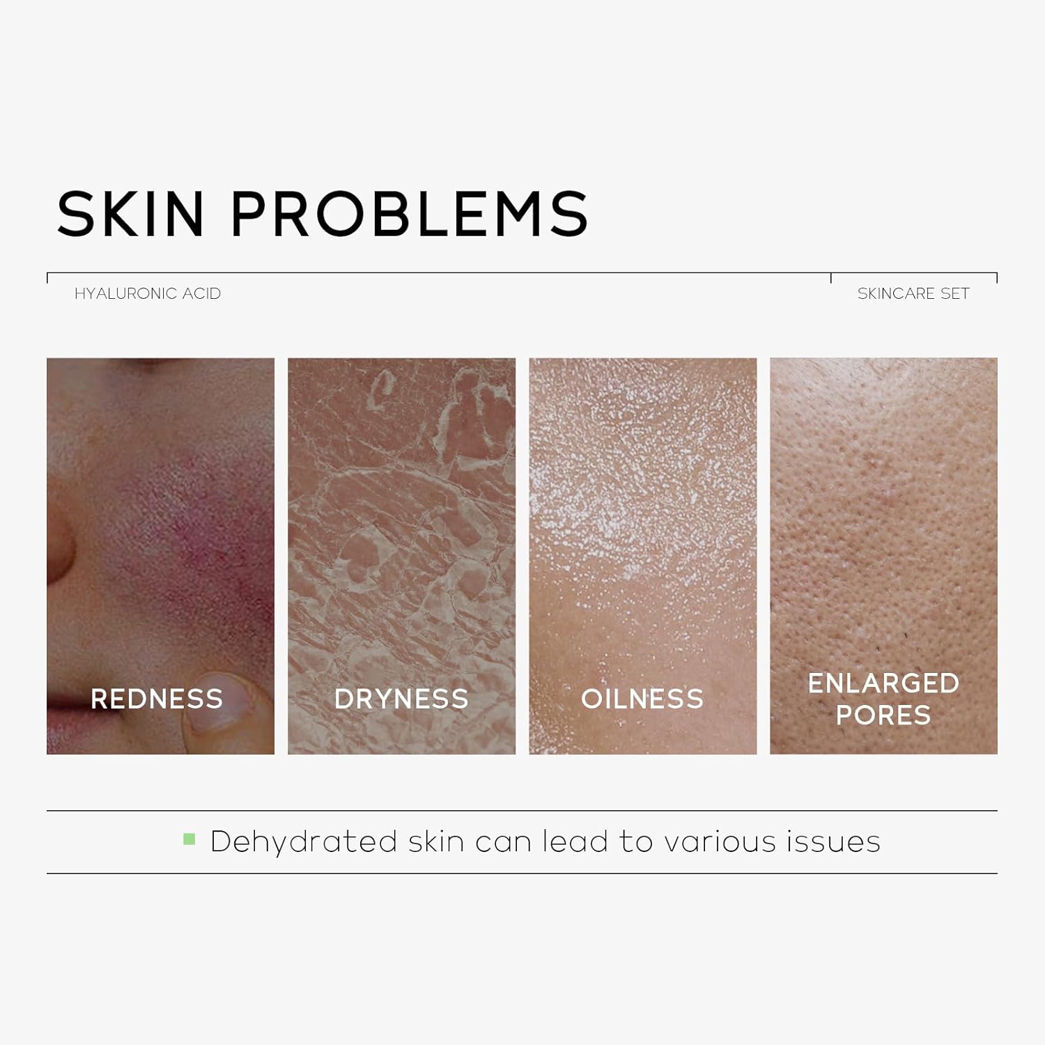 - 【Nourishing and Moisturizing Skincare Products】With hyaluronic acid and low molecular weight hyaluronic acid as the main ingredients, this skincare set deeply nourishes the skin and provides powerful hydration. It also contains centella asiatica, caffeine, squalane, vitamin C, vitamin E, and other active ingredients to address aging issues caused by skin dehydration. Deep Hydration Skin Care Set optimizes your skincare routine and delivers excellent results. When used together, your skin will be filled with the essential moisture needed for a healthy, hydrated complexion.