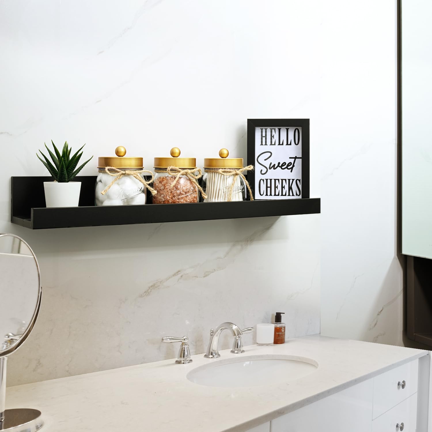 - Qtip Holders Bathroom Set: These apothecary jars with lids provide an elegant and functional solution for organizing a variety of bathroom essentials, including q-tips, cotton balls, cotton swabs, cotton pads, dental floss picks, tampons, bath salts, hair ties, beauty tools, and other small household items. Their practical, versatile, and affordable design makes them an ideal choice for enhancing any bathroom organization system.