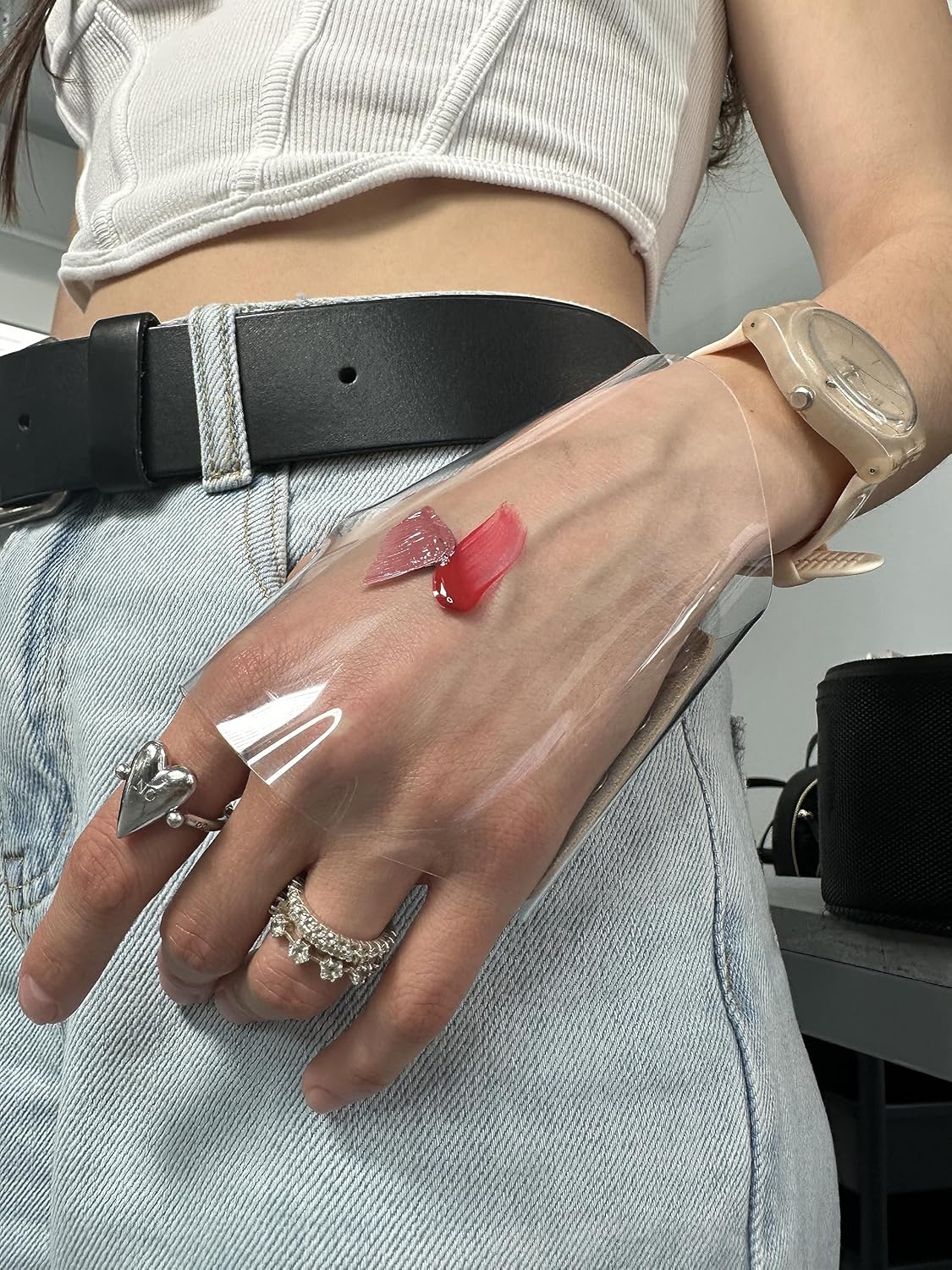 - It is convenient to use when gluing rhinestones, pearls for the body, squeezing out the glue for eyelashes. It can be easily removed after with a wet wipe and your palette will be clean.