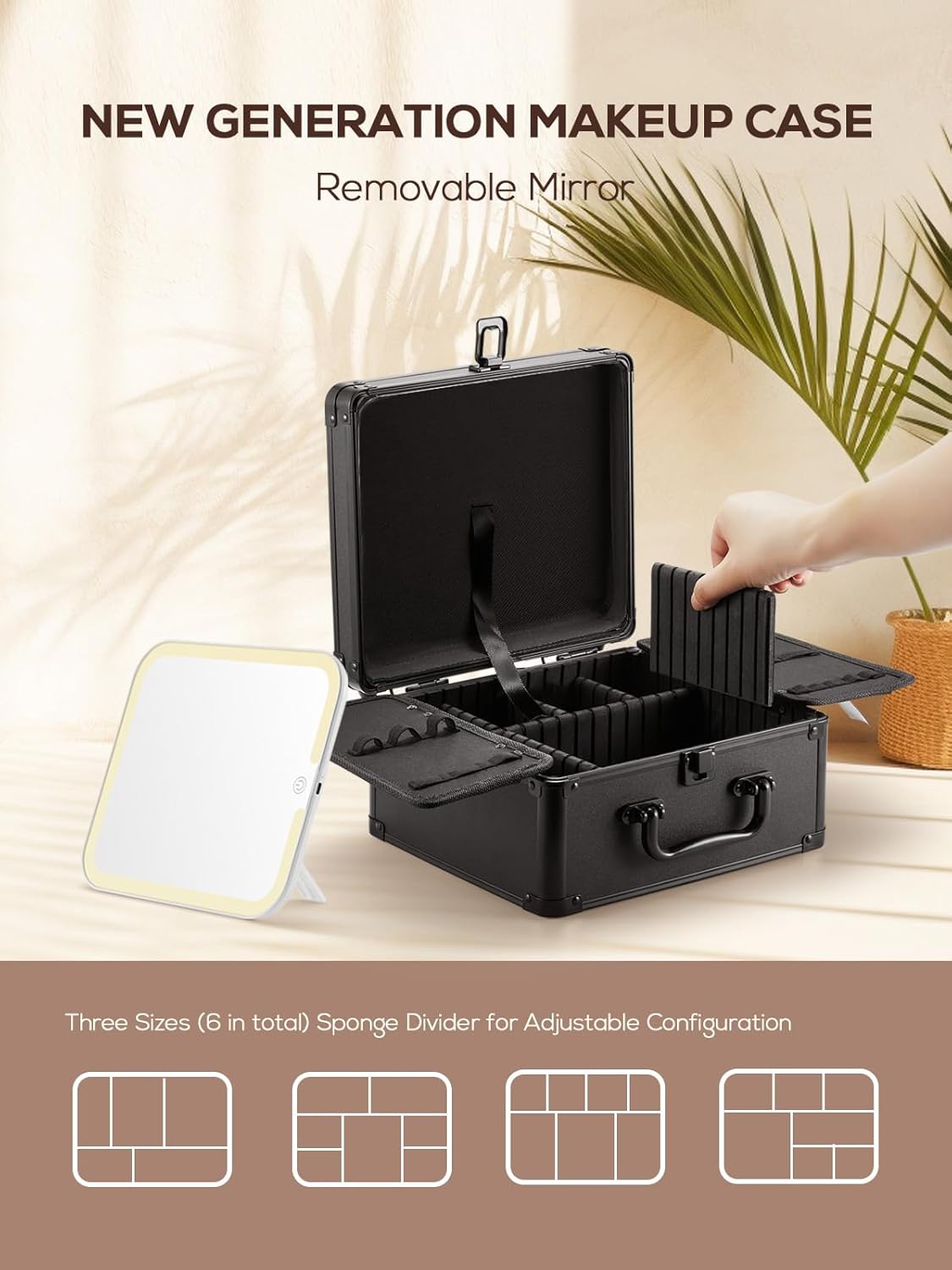 OMIRO Makeup Case, Makeup Bag with Light Up Mirror Set, Makeup Organizer Bag with Magnet Makeup Mirror for Women and Girls