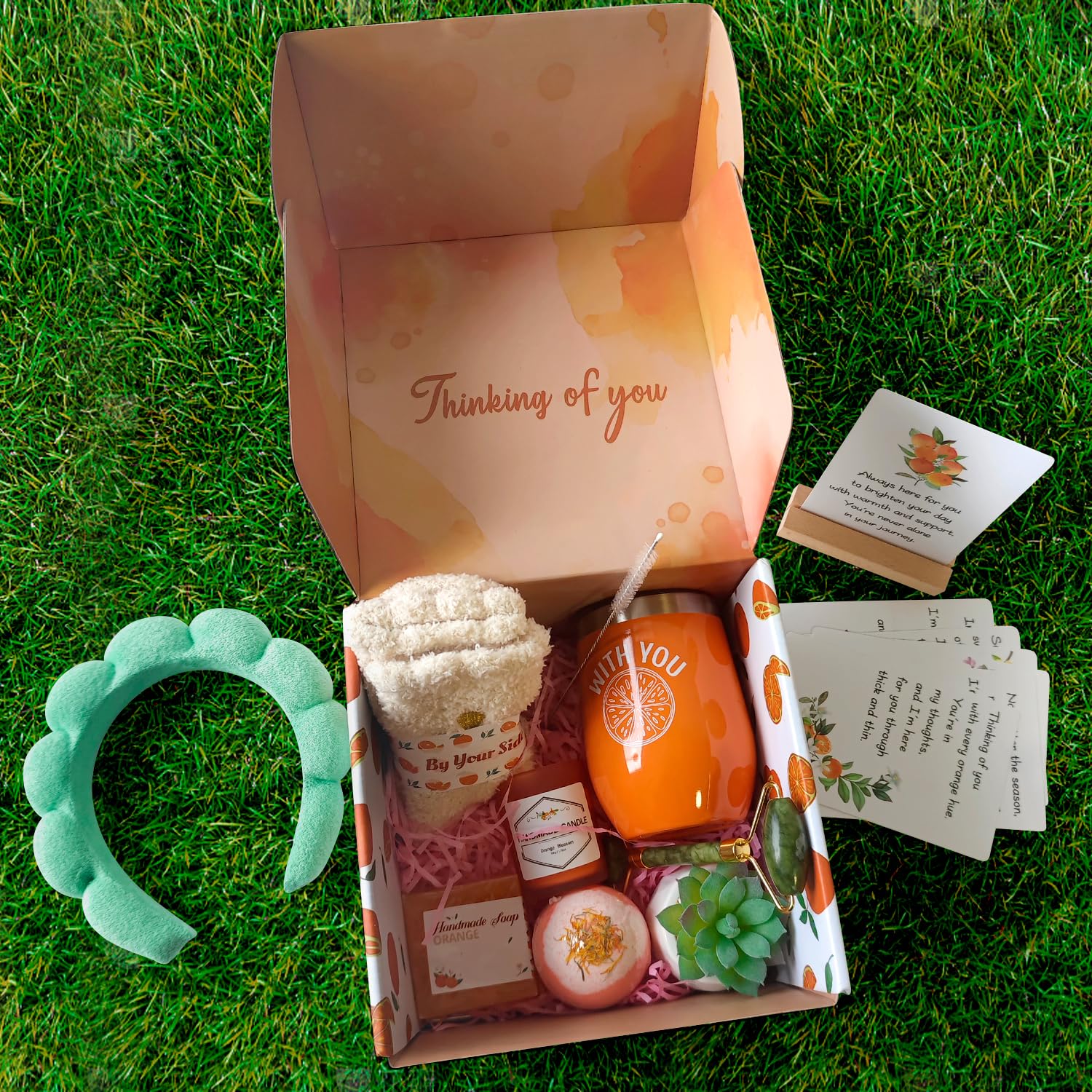 - Orange-Themed Beauty: Enjoy the refreshing scent and look of oranges with this themed self-care package. It's designed to make your pampering routine more enjoyable.