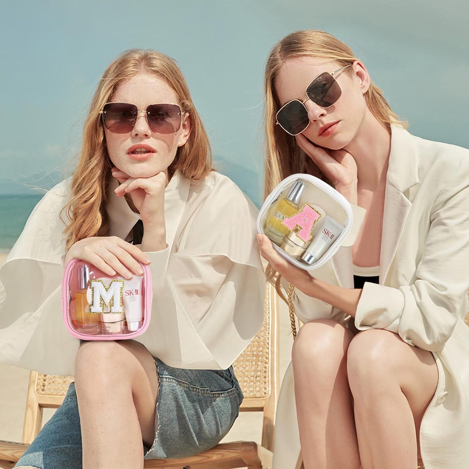 YOOLIFE Initial Make Up Bag Travel Toiletry Bag, Clear Makeup Bag Preppy Cosmetic Bags Organizer Travel Essentials Gifts for Women Teen Girlfriend Teacher Mom Birthday Mothers Day Gifts White G