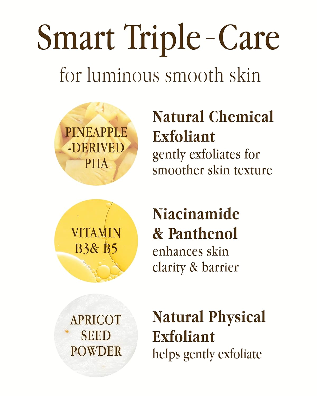 - PINEAPPLE EXTRACT - Pineapple extract, rich in natural alpha hydroxy acid (AHA), helps to visibly smooth your complexion.