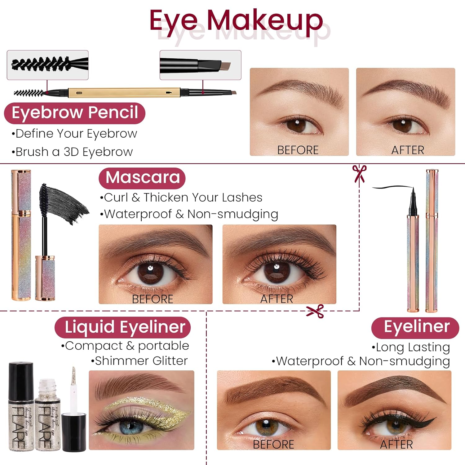 - 【Applicable to Various Situations】 This set encompasses an extensive range of styles and hues, allowing you to freely blend and coordinate. Whether for daily work, excursions, or theatrical performances, you will always locate the perfect cosmetics here. Irrespective of whether you're a seasoned makeup artist or a novice, this compilation will cater to the majority of your makeup requirements. It's a versatile and dependable makeup kit!