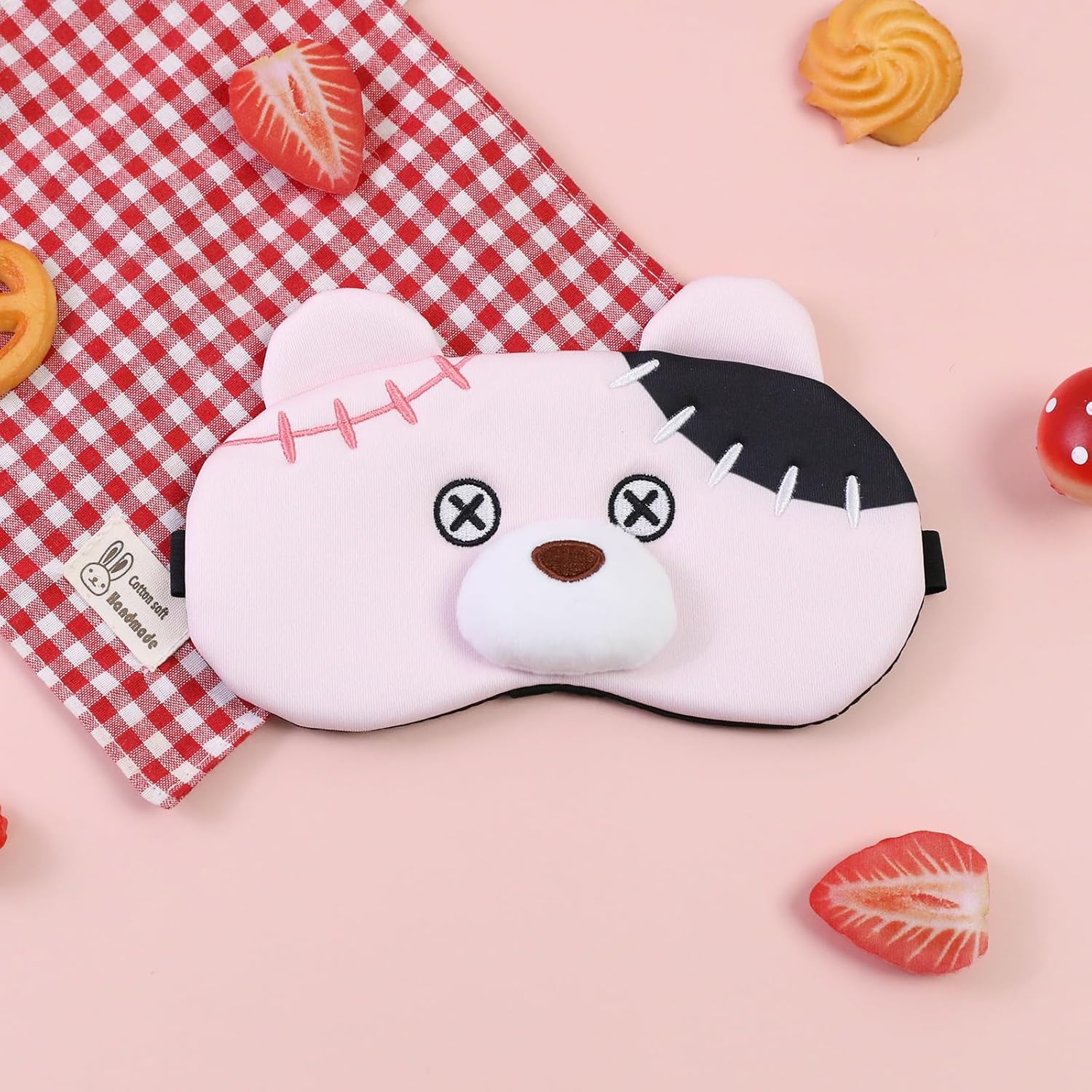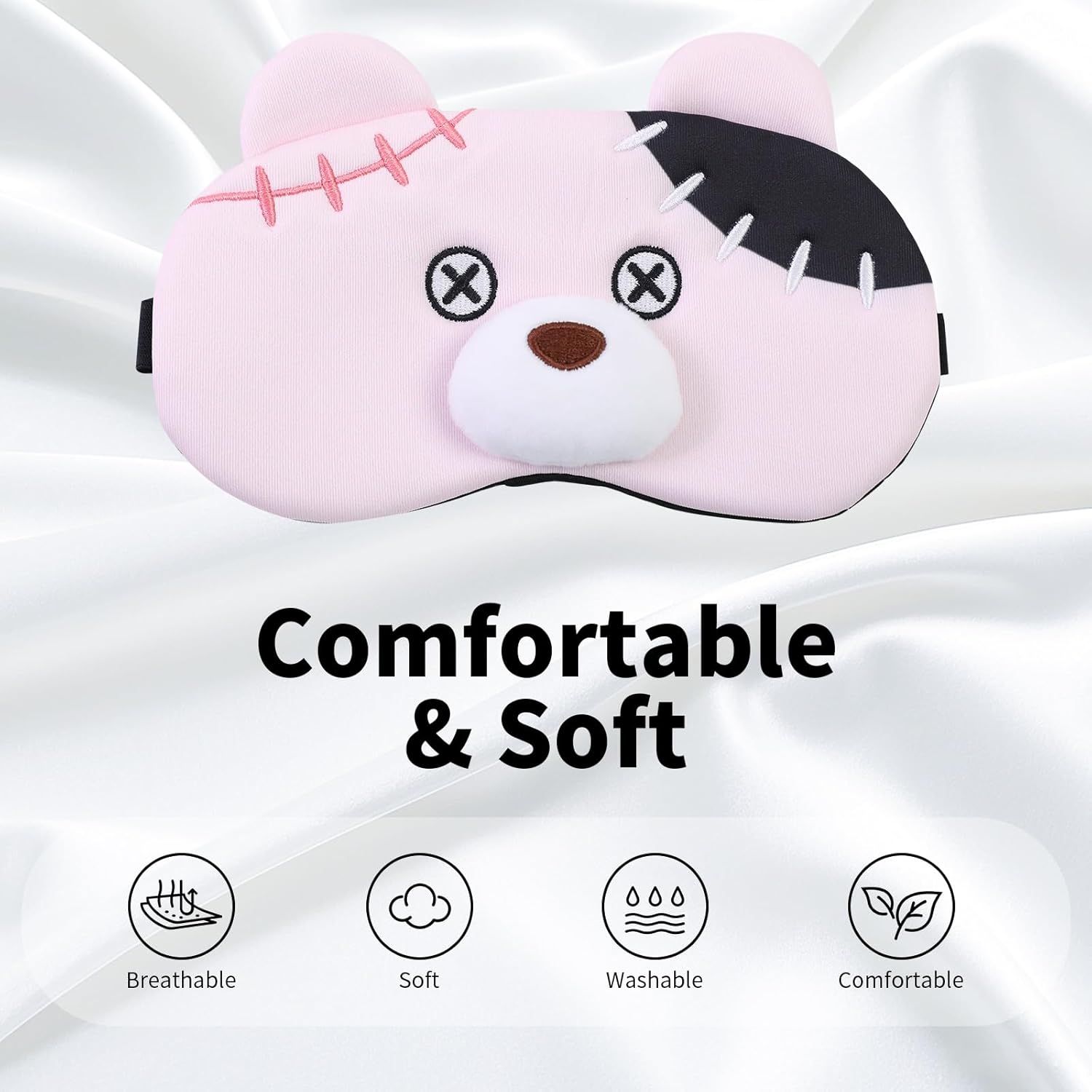 PERFECTSIGHT Sleep Eye Masks, Cute Plush Sleep Eye Cover Lightweight Adjustable Eyeshade Faux Fur Mask Cover for Women Men Kids Sleep Travel Nap, Pink Pudding Bear