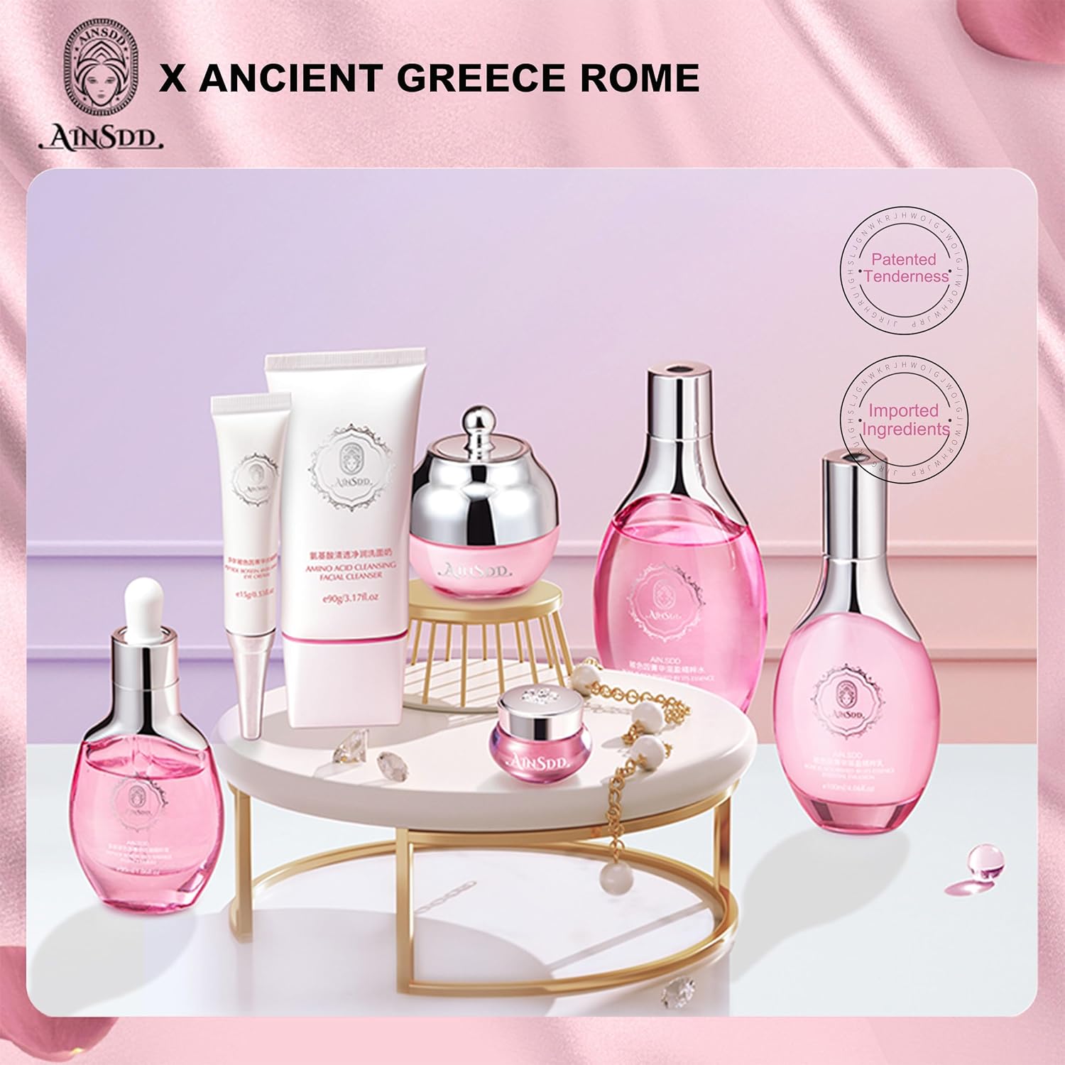 - ๐ There are seven parts in this set, including cleanser, toner, lotion, cream, serum and so on. Each one has its own unique efficacy and can be targeted to help you solve multiple facial skin problems at the same time. Whether it is lack of water, sensitivity, dullness or enlarged pores and other problems, it can be effectively improved.