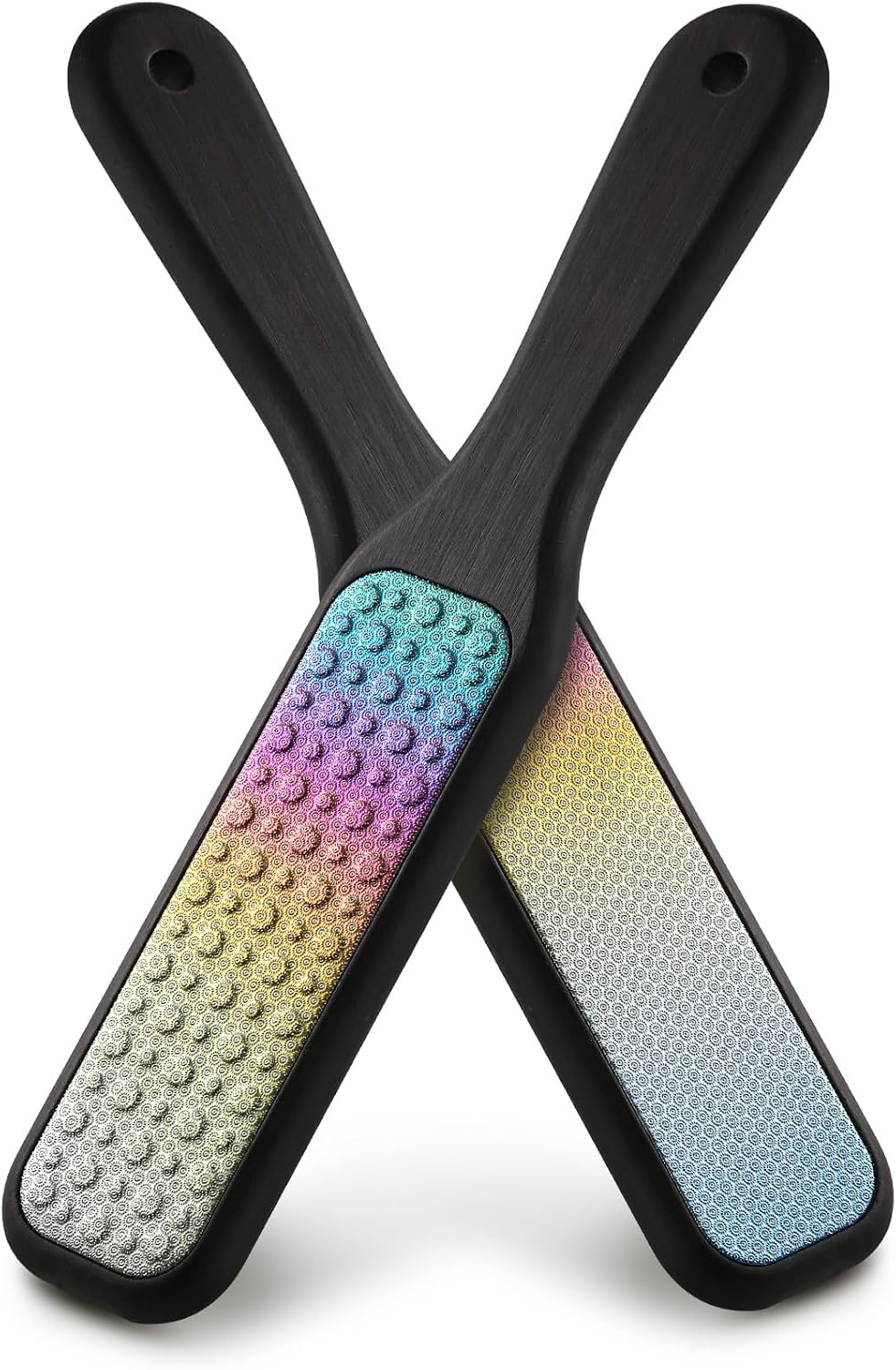 - DOUBLE SIDED FOOT FILE - Our foot scraper has two excellent pedicure sides. One side focuses on thicker, harder skin, removing unwanted foot calluses and rough spots. The other foot filing side mainly targets thinner skin to safely remove dead skin and smooth cracks.