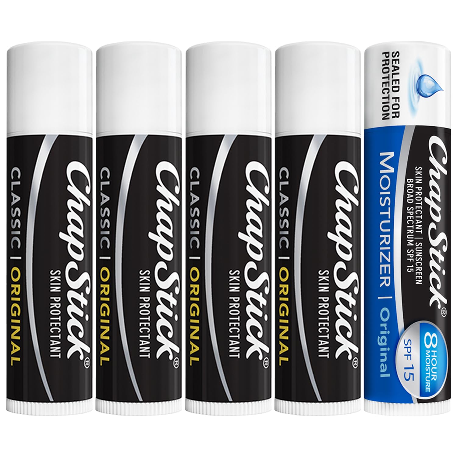 - HYDRATING LIP TREATMENT: This bundle features 4 Classic Original Chapsticks to soften and protect your lips – plus 1 ChapStick Original Moisturizer 2-in-1 Lipcare with broad spectrum SPF 15 UVB protection.