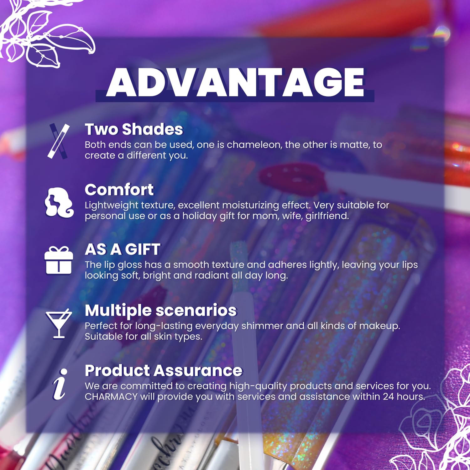 CHARMACY Multichrome Double Head Non-Stick Lip Gloss, Metallic Colourful Lip Glaze, Anti-transfer, Long Lasting Waterproof Liquid Lipstick Makeup (#02)