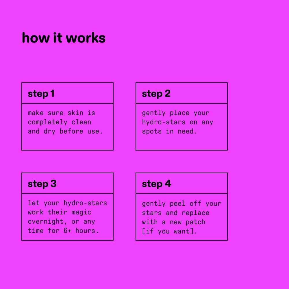 - EASY TO USE: Always apply to clean, dry skin (after cleansing and before moisturizing). Replace with a new star in the morning, or after 6+ hours.