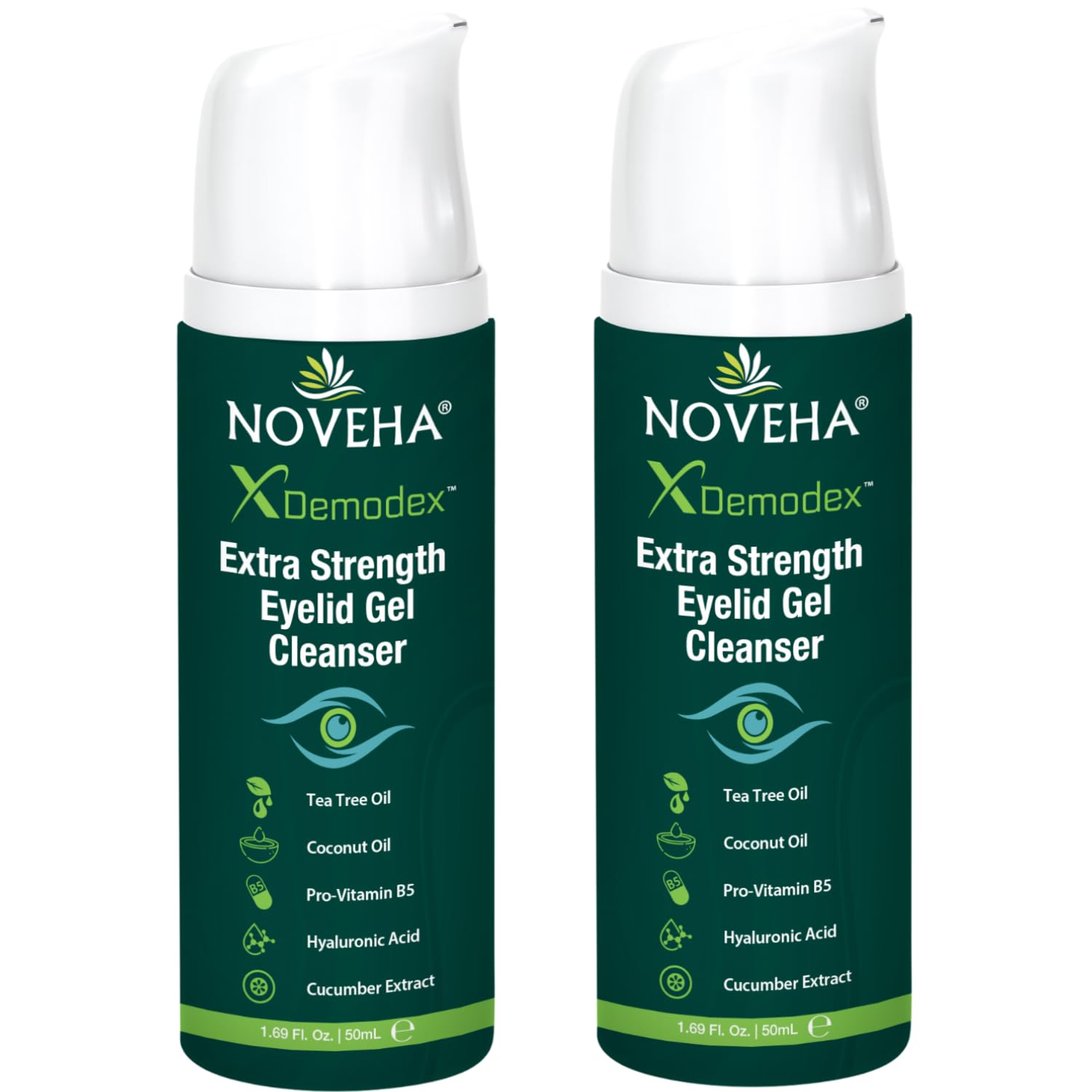 NOVEHA Demodex Extra Strength Eyelid Gel Cleanser - for Demodex, MGD and Dry Eye with Pro-Vitamin B5, Tea Tree Oil, and Hyaluronic Acid - Gentle Cleansing, Soothes Itchy Eyelid - 50mL (2 Pack)