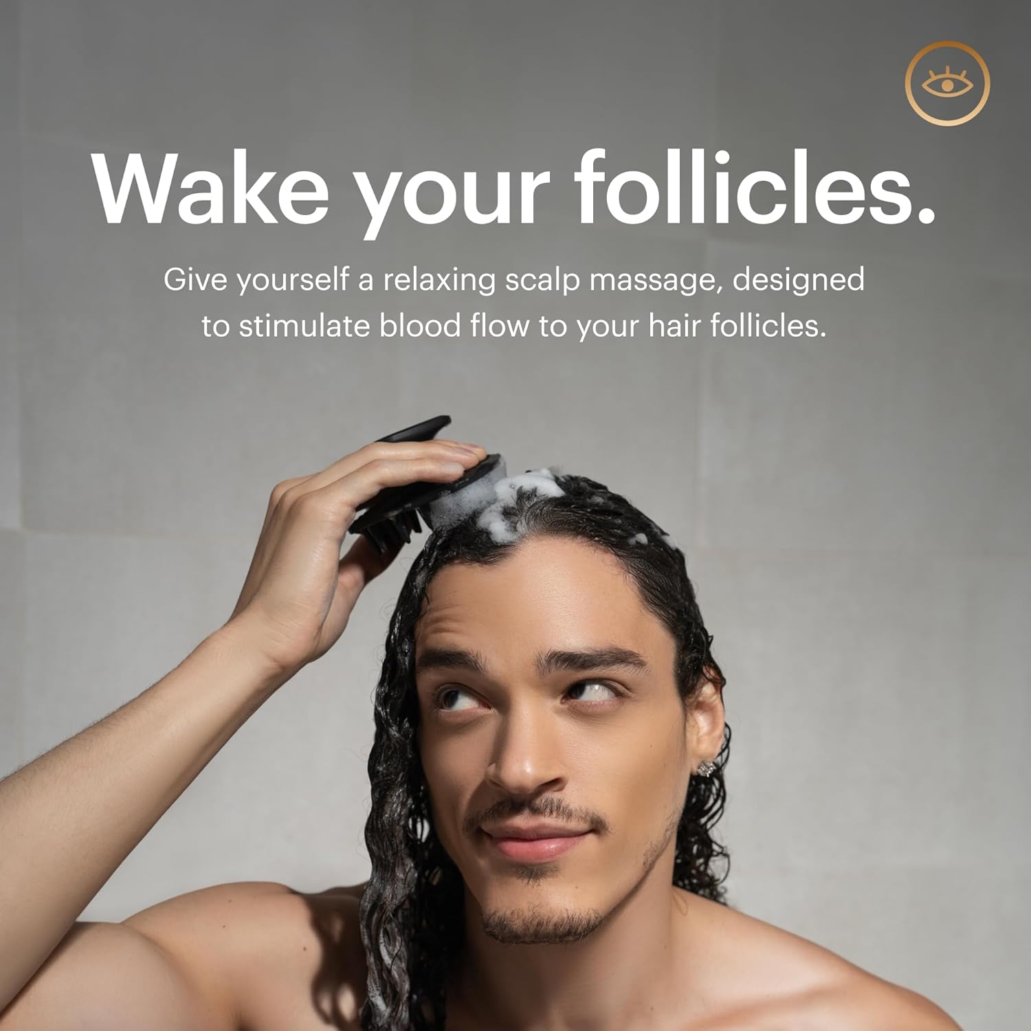 - WAKE YOUR FOLLICLES: Give yourself a relaxing scalp or beard massage, designed to stimulate blood flow to your hair follicles. Add a nickel-sized drop of our 2-in-1 Shampoo + Conditioner to your Scalp Buffer, work it into a lather, and massage in small, circular motions.