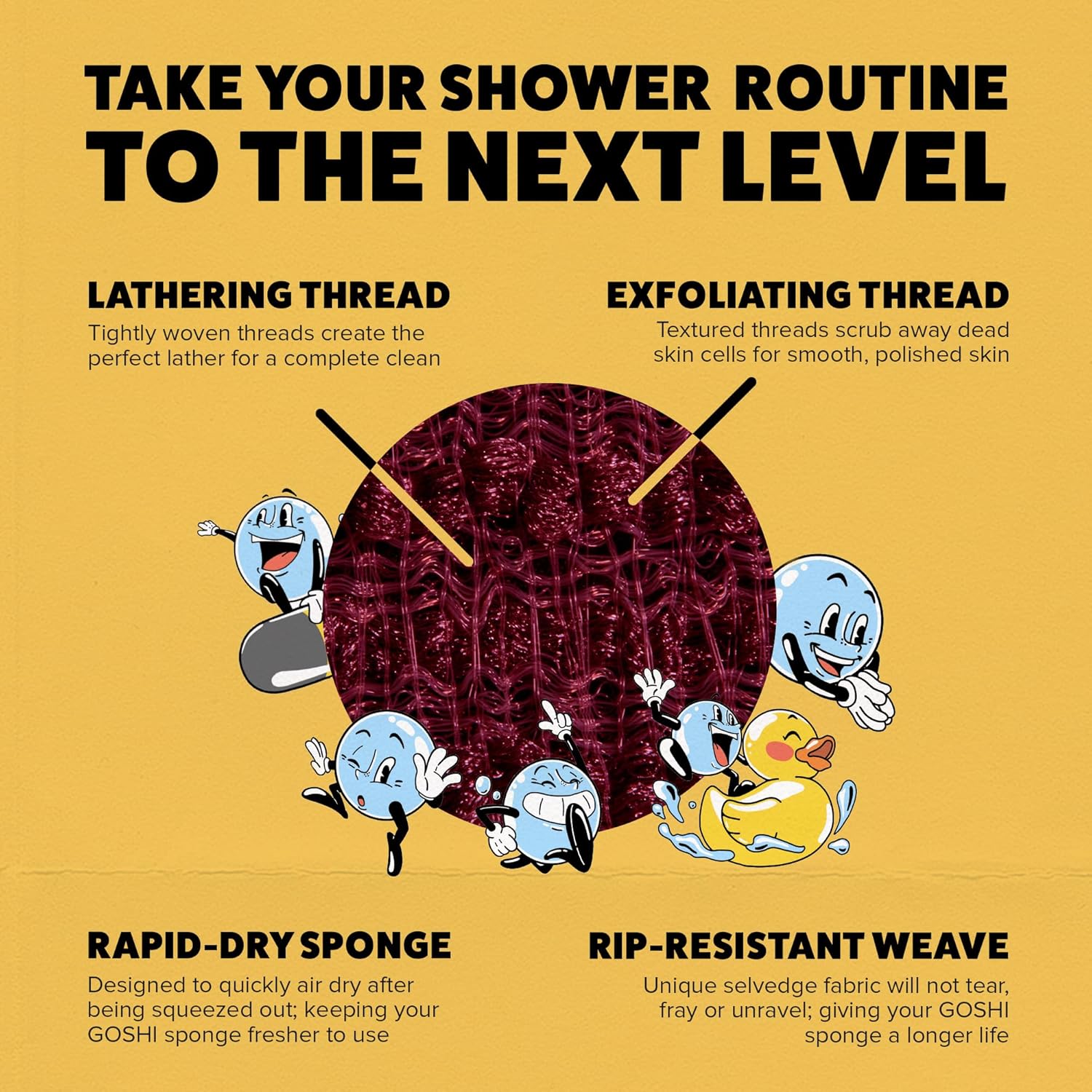 - The Softest and Cleanest You’ll Ever Feel: Introducing an exfoliating shower sponge for a refreshing body exfoliation experience made easy. Crafted in the finest Japanese textile mills, the GOSHI exfoliating shower sponge is woven with subtly contrasting fibers that both scrub your skin clear and wash your body clean.