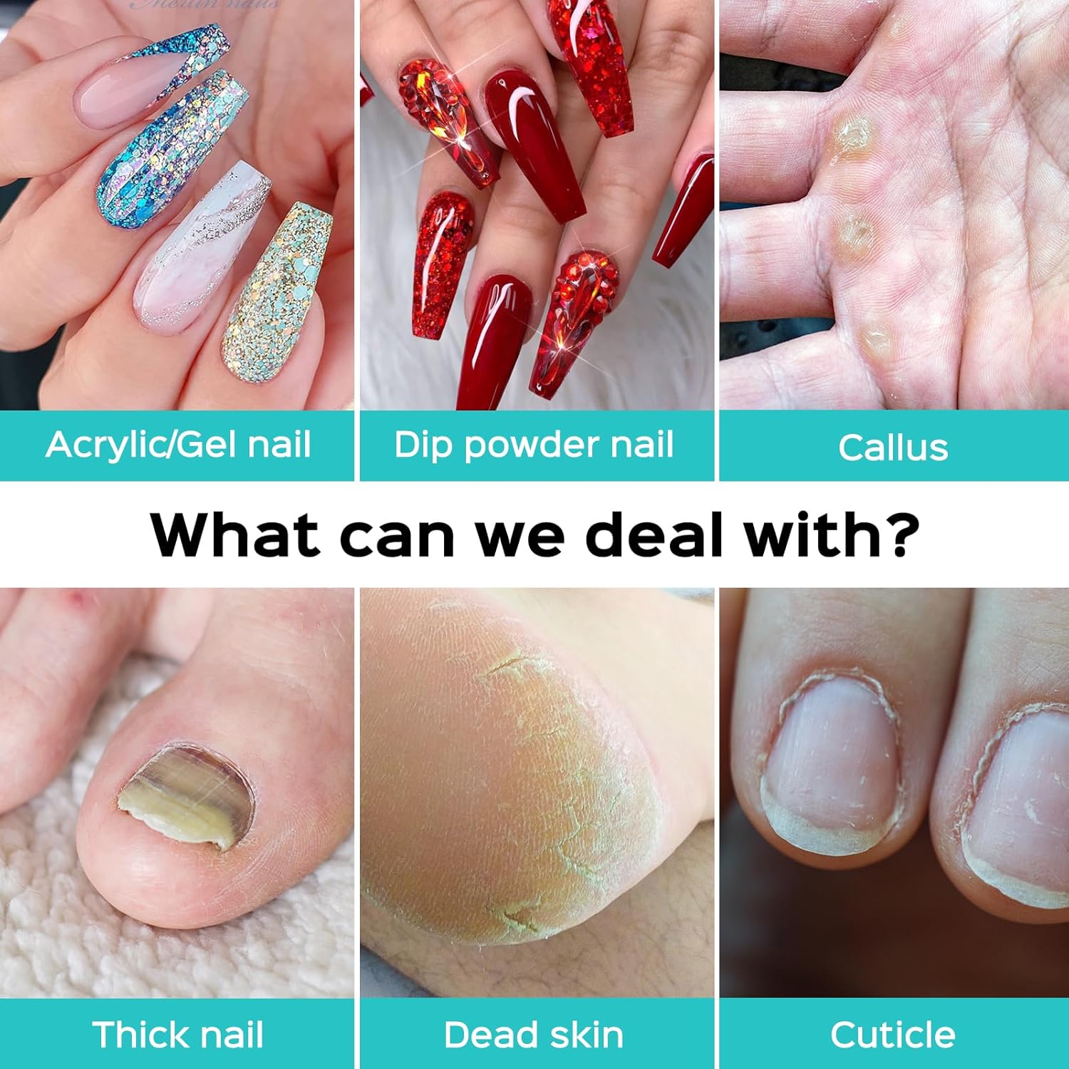 - Multifunctional Nail Drill Kit: With adjustable various speeds and 6 different nail drill bits, this electric nail file can polish or remove acrylic, gel, and dip powder nails, as well as tackle thick nails and cuticle dead skin