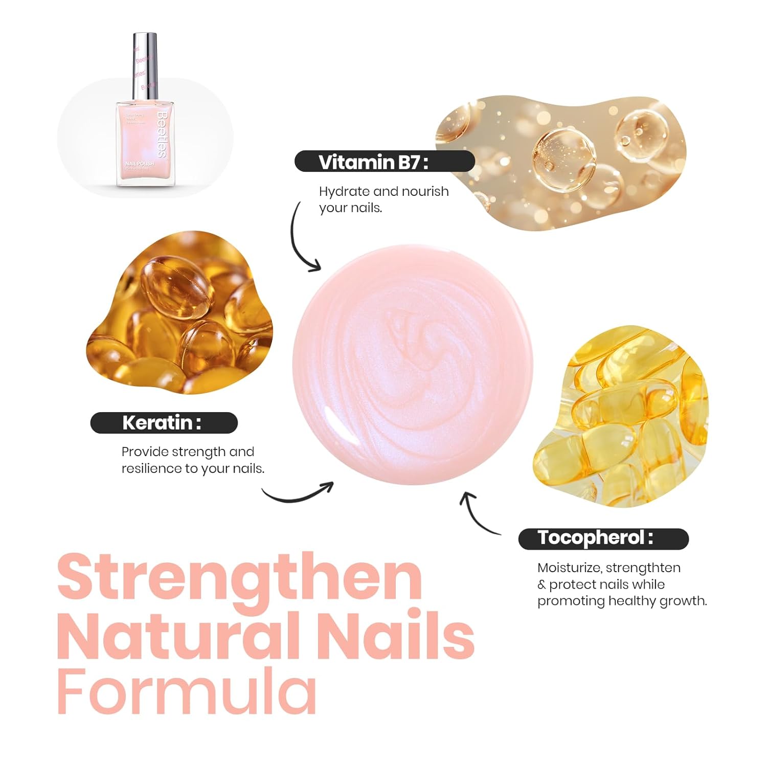 Beetles Pink Glitter Nail Polish and 2 in 1 Base & Top Coat Set, Fast Drying & Natural Nail Lacquer Strengthen Shimmer-Like Purple Mermaid Tears, No UV Lamp Needed for DIY Nail Art Gifts for Women