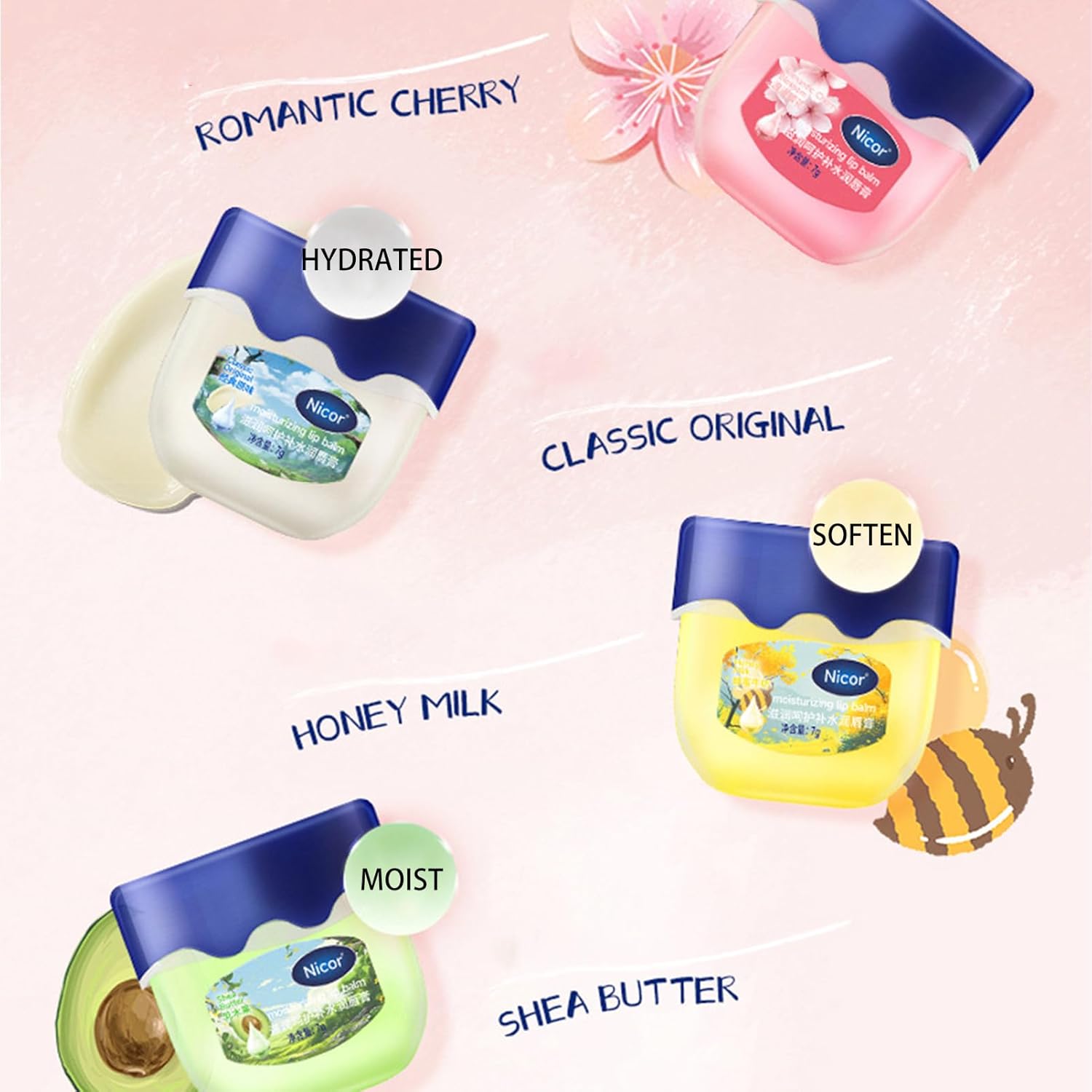 - 【Nourishing and Moisturizing】 Our lip balm pack is enriched with natural ingredients, such as honey milk, shea butter, cherry, and aloe vera, sakura extract, that work together to nourish and moisturize your lips. Get a lush and supple pout, and prevent chapping with our hydrating lip balm.