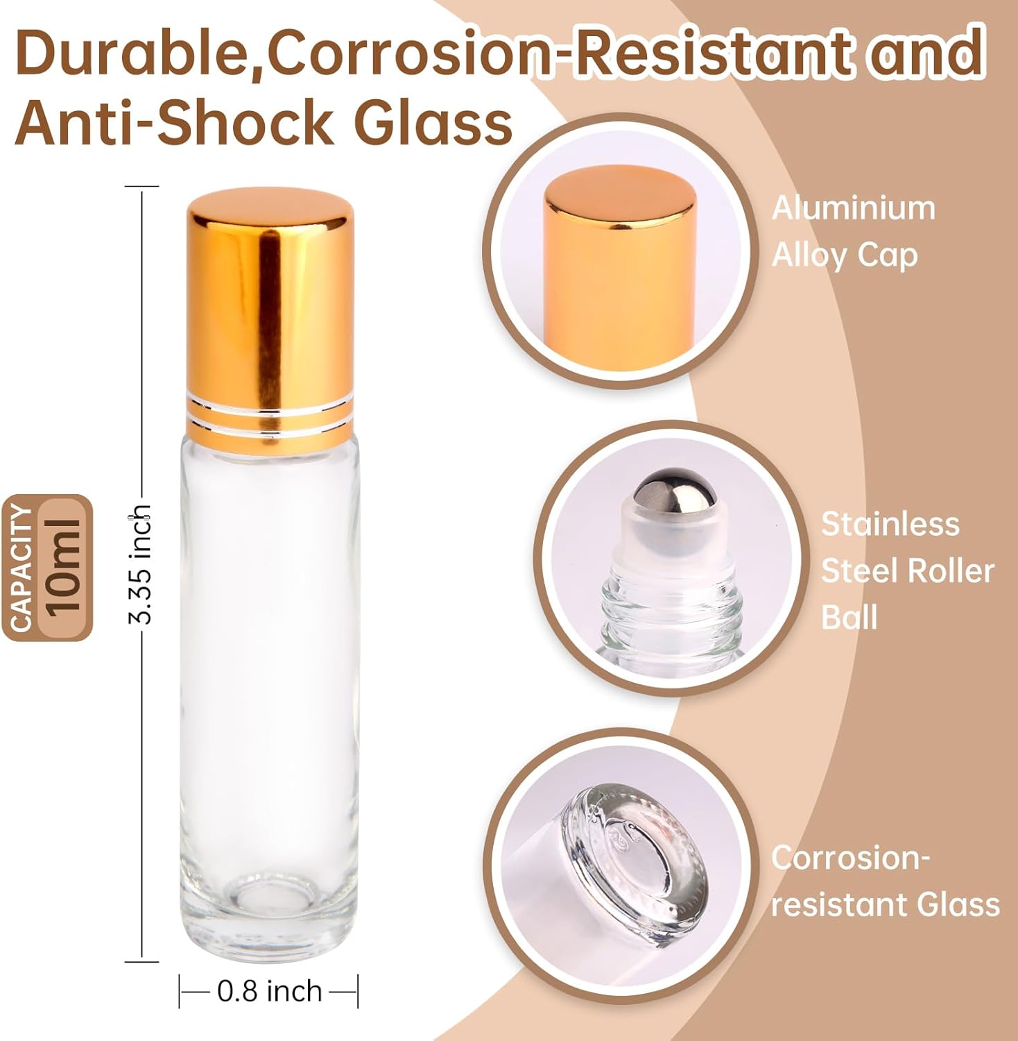 - Comprehensive Accessories: 4 clear glass bottles +4 stainless steel roller balls +6 labels +2 droppers +2 funnel +1 opener