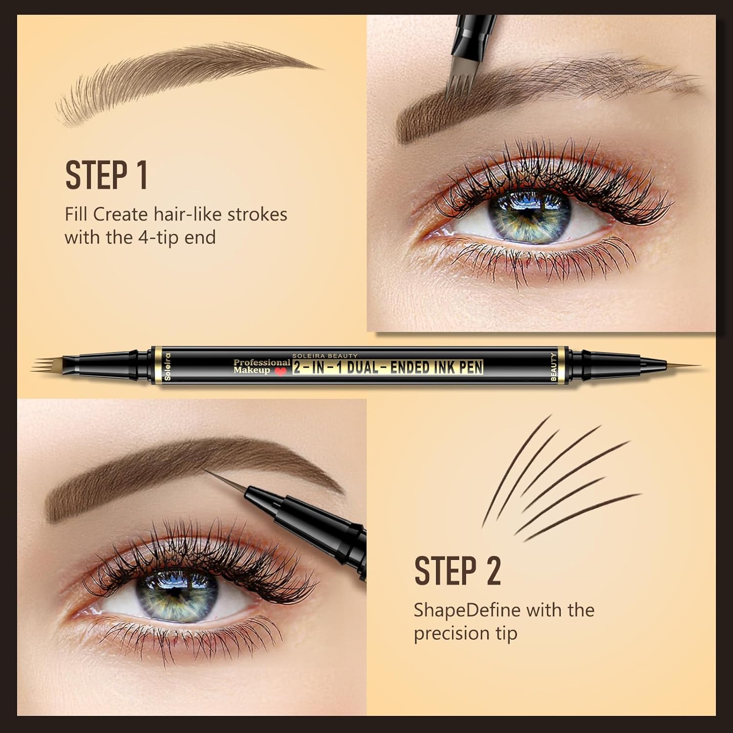- Create 3D Natural Brows: The 4-tip hair-like brow pen effortlessly mimics real brow hairs, blending color into sparse areas for a full, dimensional look. Ideal for those seeking natural, yet defined brows with a microblading effect