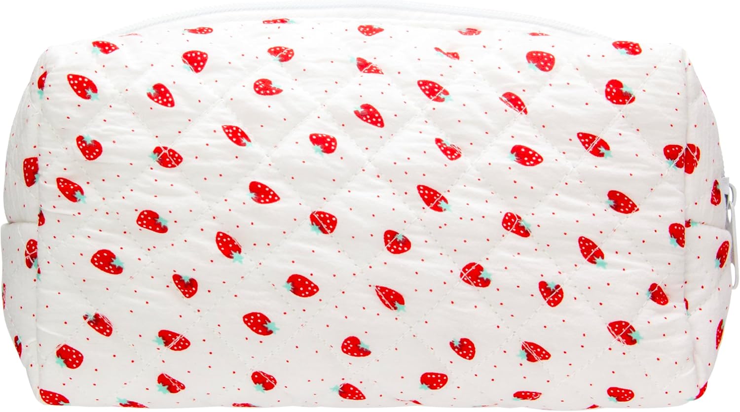 PAZIMIIK Vintage Quilted Makeup Bag Cosmetic Pouch for Brushes Pencils and Travel Make Up Accessories for Women and Girls Strawberry