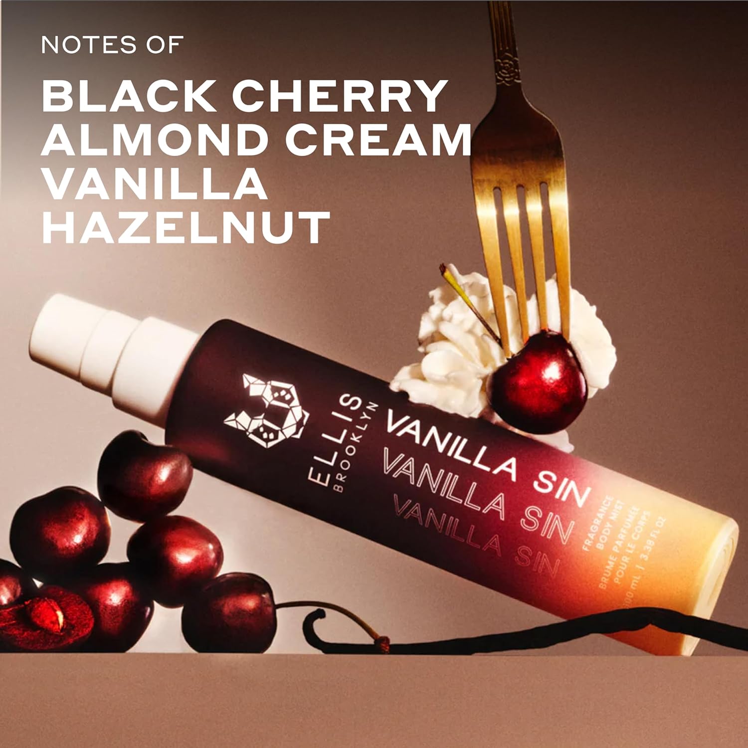 Ellis Brooklyn VANILLA SIN Hair And Body Fragrance Mist - Gourmand Perfume Mist with Black Cherry, Fresh Freesia, & Bourbon Vanilla, Vegan Perfume Made In The USA, 50ml 1.7 Fl Oz