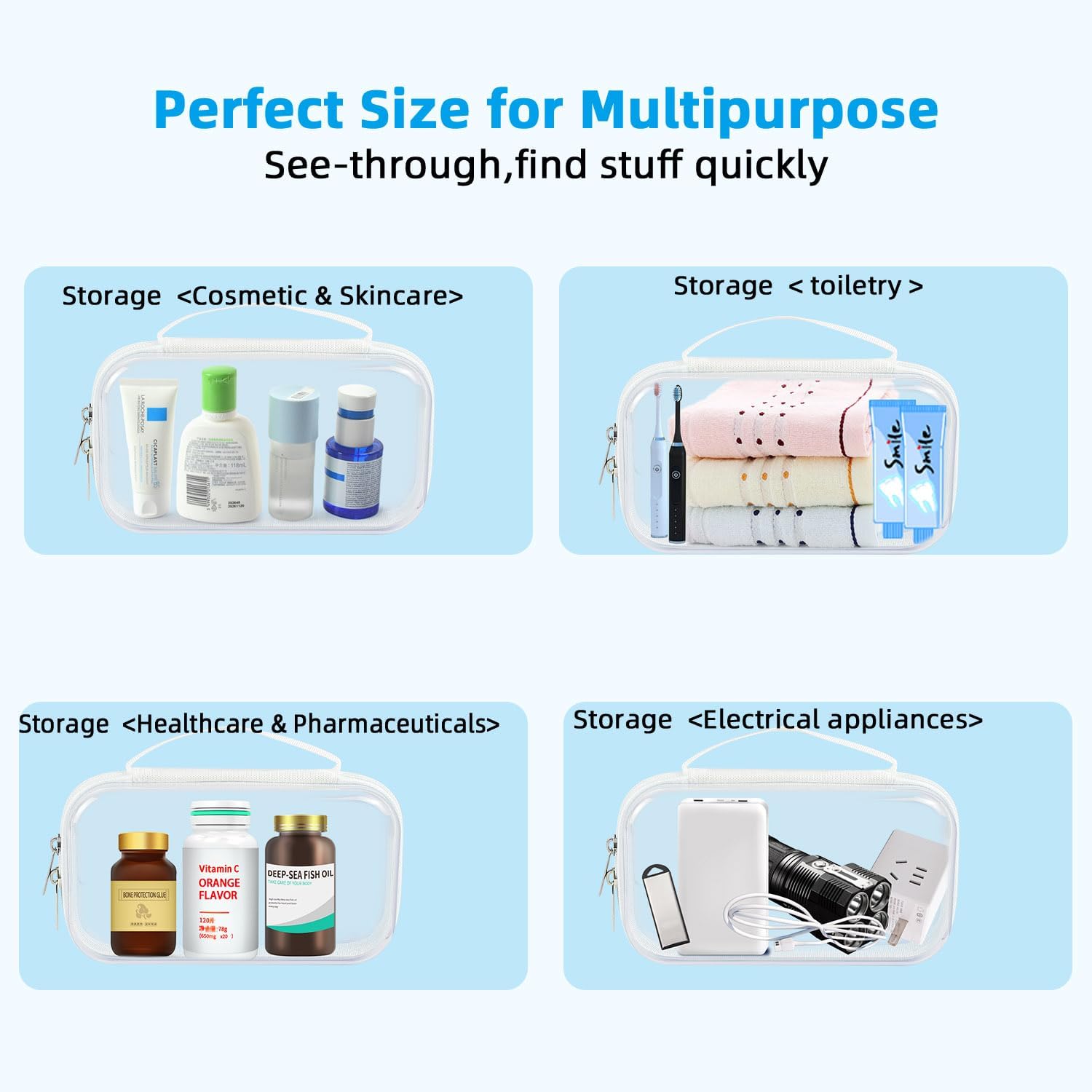 • Stackable & Large Capacity:Stackable Large Capacity Clear Storage Bin, offering a large storage capacity, Size: 7x4x2in. This bag easily accommodates all your toiletries, transforming packing into a stress-free task. A great tool for your suitcase or handbag, and as a organizer.