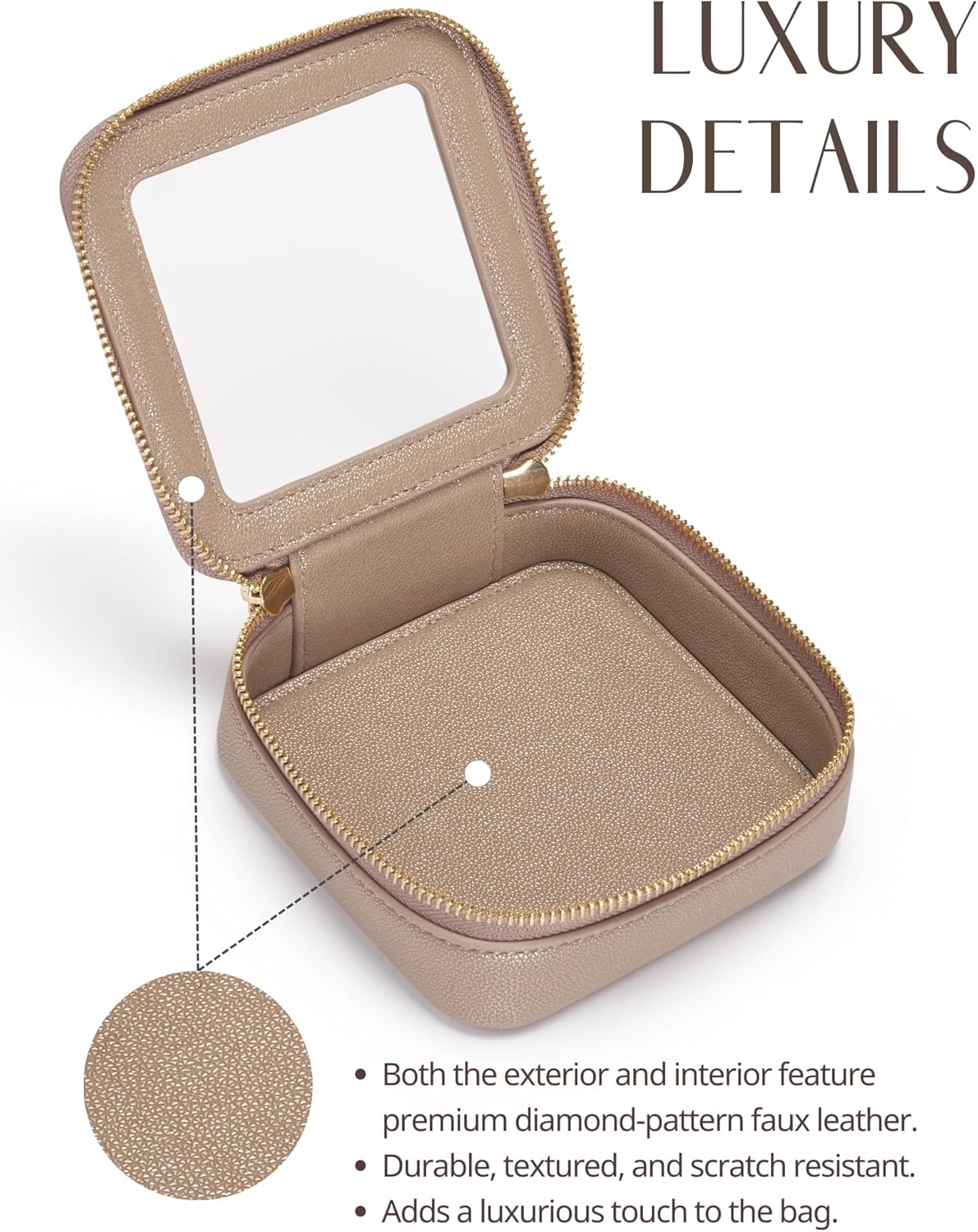 • [Mini but Mighty] – The white mini makeup bag measures 5'' x 4.7'' x 2'' (12.7cm x 12cm x 5cm), perfect for holding daily mini essentials including lip balms, hair ties, jewelry, Air Pods, charging cords and medications. Slip it into your purse, backpack, everyday tote or travelling bag for easy access to your must-have items.