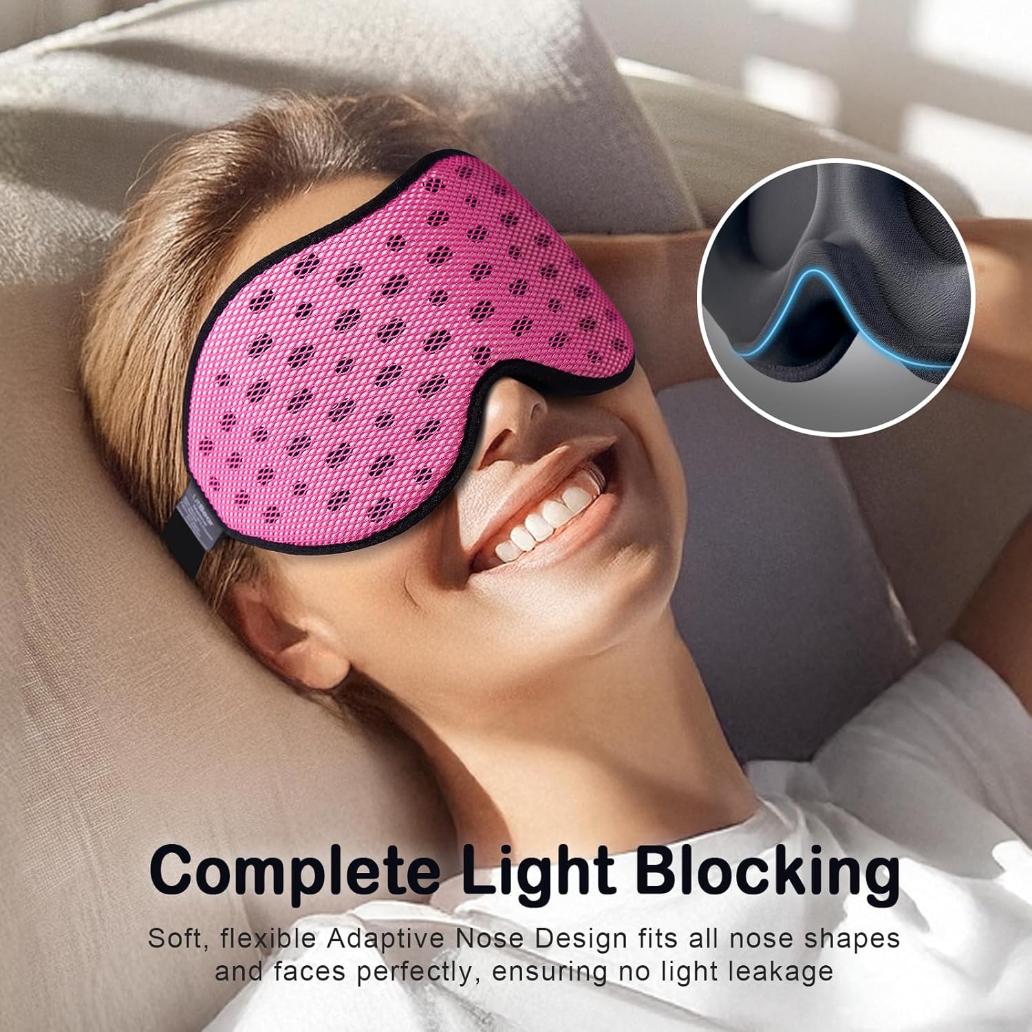 LitBear Breathable Sleep Mask, 3D Eye Mak Sleep for Side Sleepers Women Men, Light Blocking Sleeping Mask with Adjustable Strap, Soft Lightweight Eye Cover for Travel, Night Work, Nap, Office - Pink