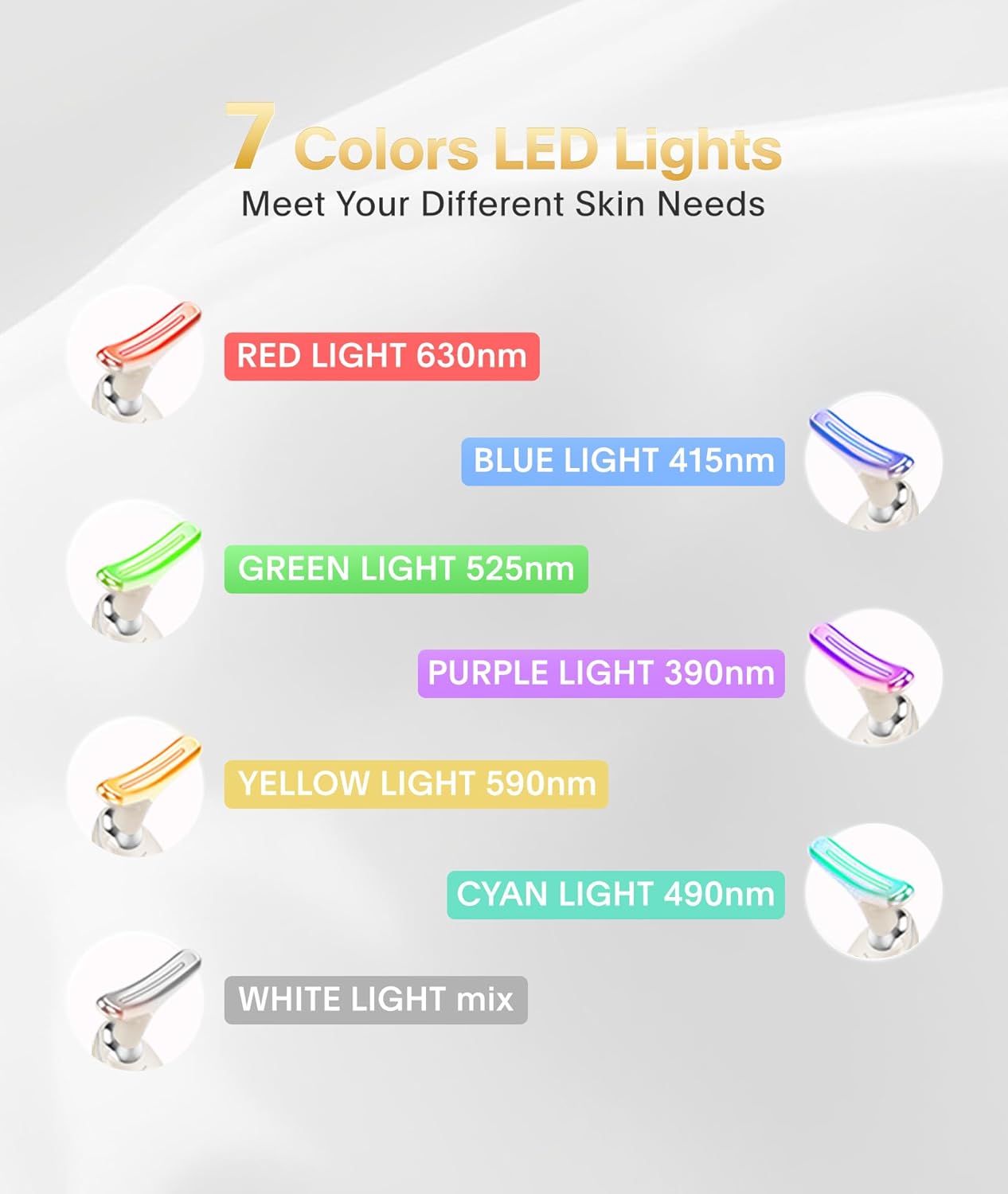 - How to Use: Cleanse the face and apply some skincare products before use. Remove the cap, long press the button to power on and select the mode you need. It is recommended to use it once or twice a day for five to ten minutes each time