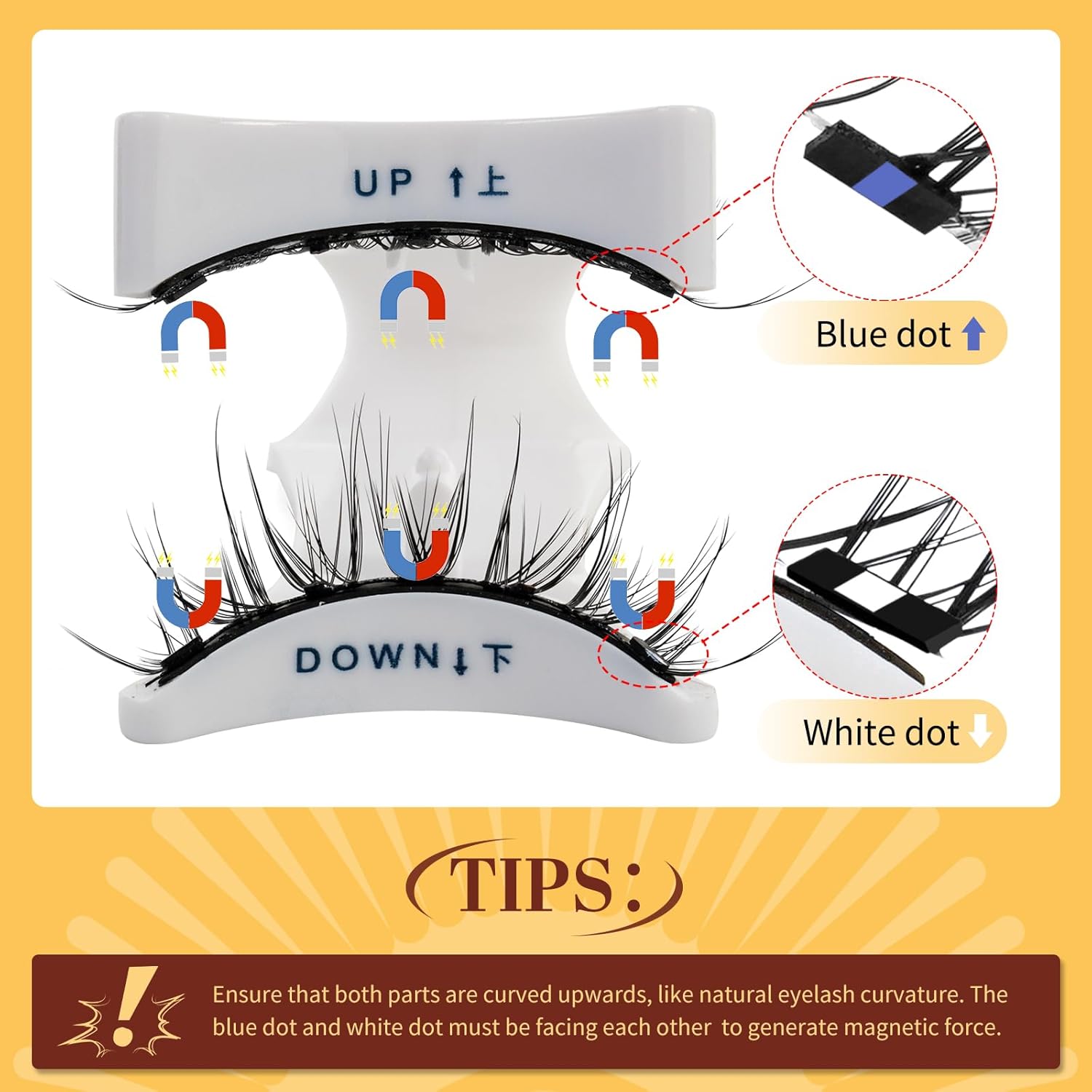- Friendly for Beginners: Our magnetic lashes are equipped with a magnetic applicator and instructions, you only need to follow the steps of the instructions. After taking out the magnetic eyelashes, gently separate them from the ends, find the small magnet on the eyelashes, and put the clip on the upper part of the eyelash close to the root of the eyelash, then gently press it to close it, and suck the upper and lower eyelashes together to complete the wearing!