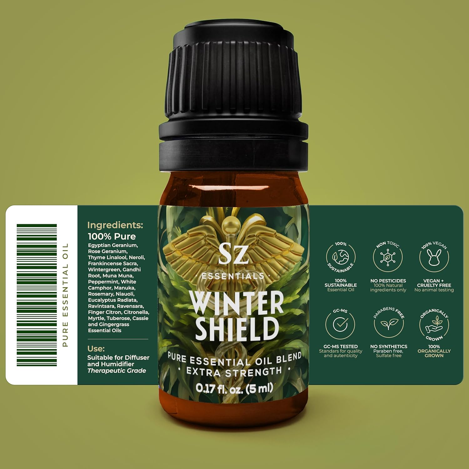 Winter Shield Essential Oil Blend for Diffuser and Humidifier - Extra Strength Protective Seasonal Defense - 100% Pure, Natural & Undiluted - Therapeutic Grade & Vegan - 0.17 oz (5ml)