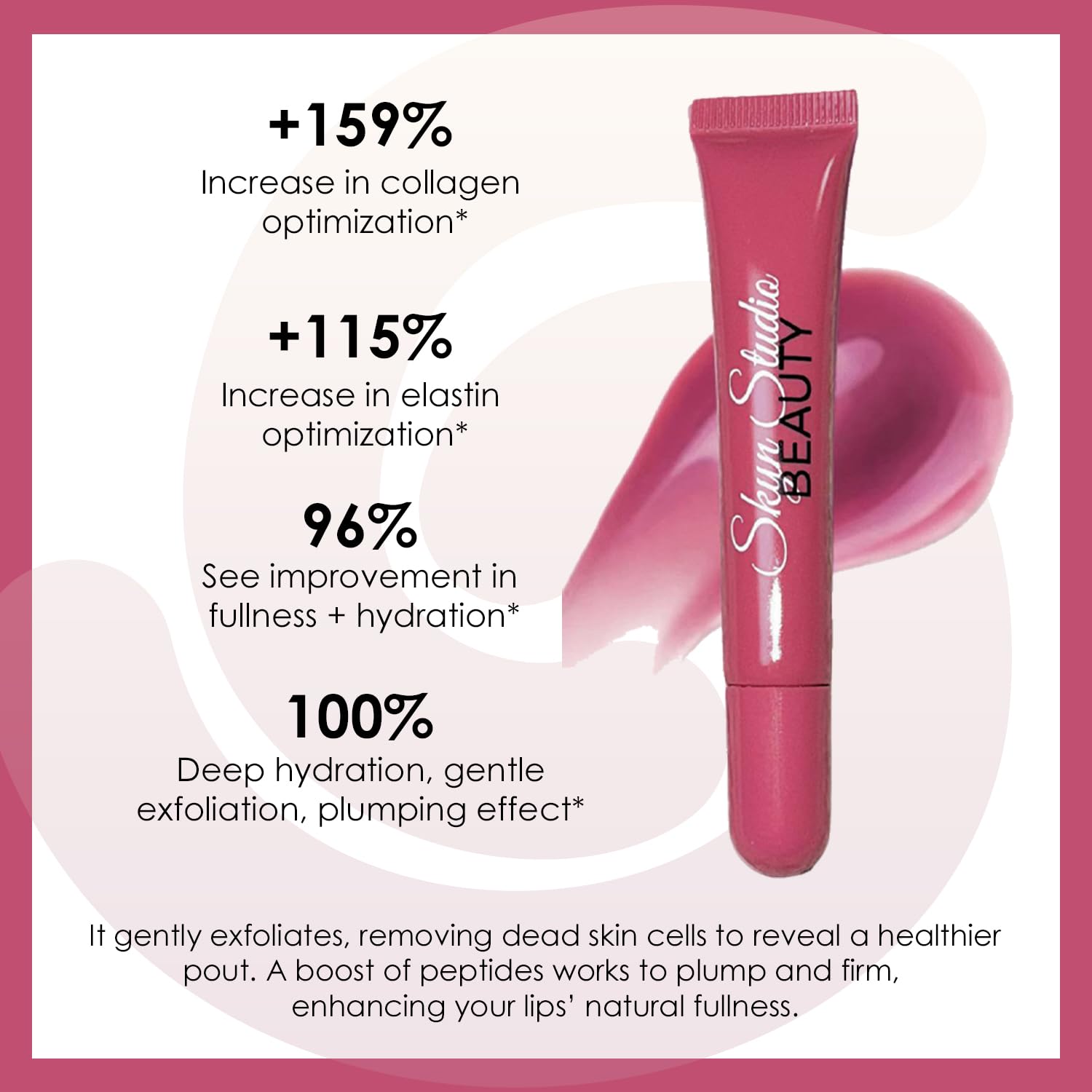 - Peptide-Powered Plumping Effect: Infused with peptides, this lip balm enhances your lips' natural fullness, creating a plumper, more youthful appearance with each application for a smoother, more defined pout.